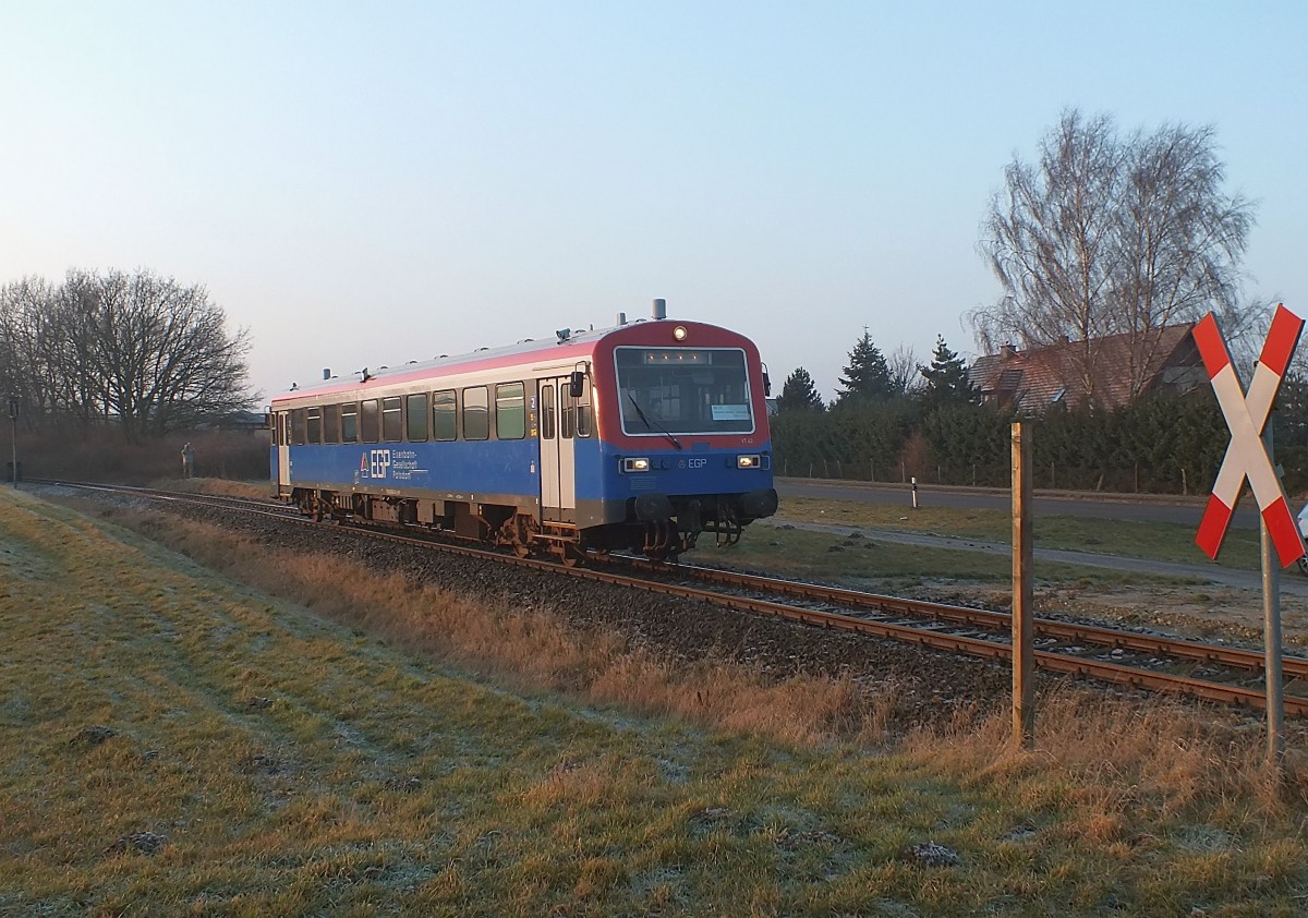 VT43 der EGP am 03.03.2014 aus Richtung Neustadt/Dosse, kurz vor der Einfahrt in den Bahnhof Pritzwalk.