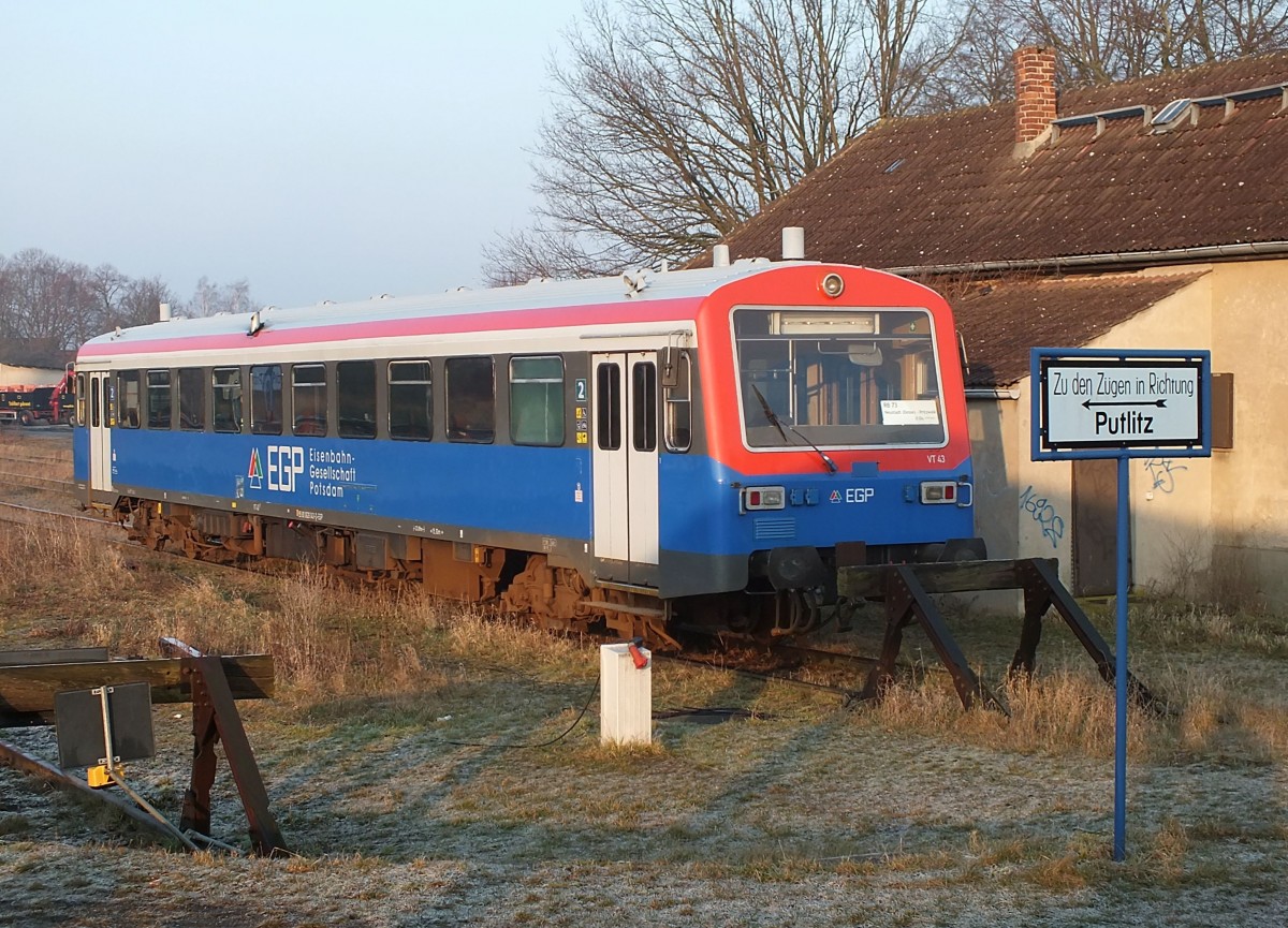 EGP VT43 und 798 610 (DERA) am 03.03.2014 im Bahnhof Pritzwalk.
