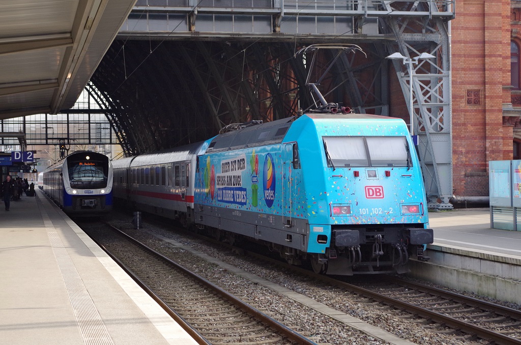 101 102 "vedes" mit Intercity am 07.03.2014 in Bremen Hbf gen Süd.