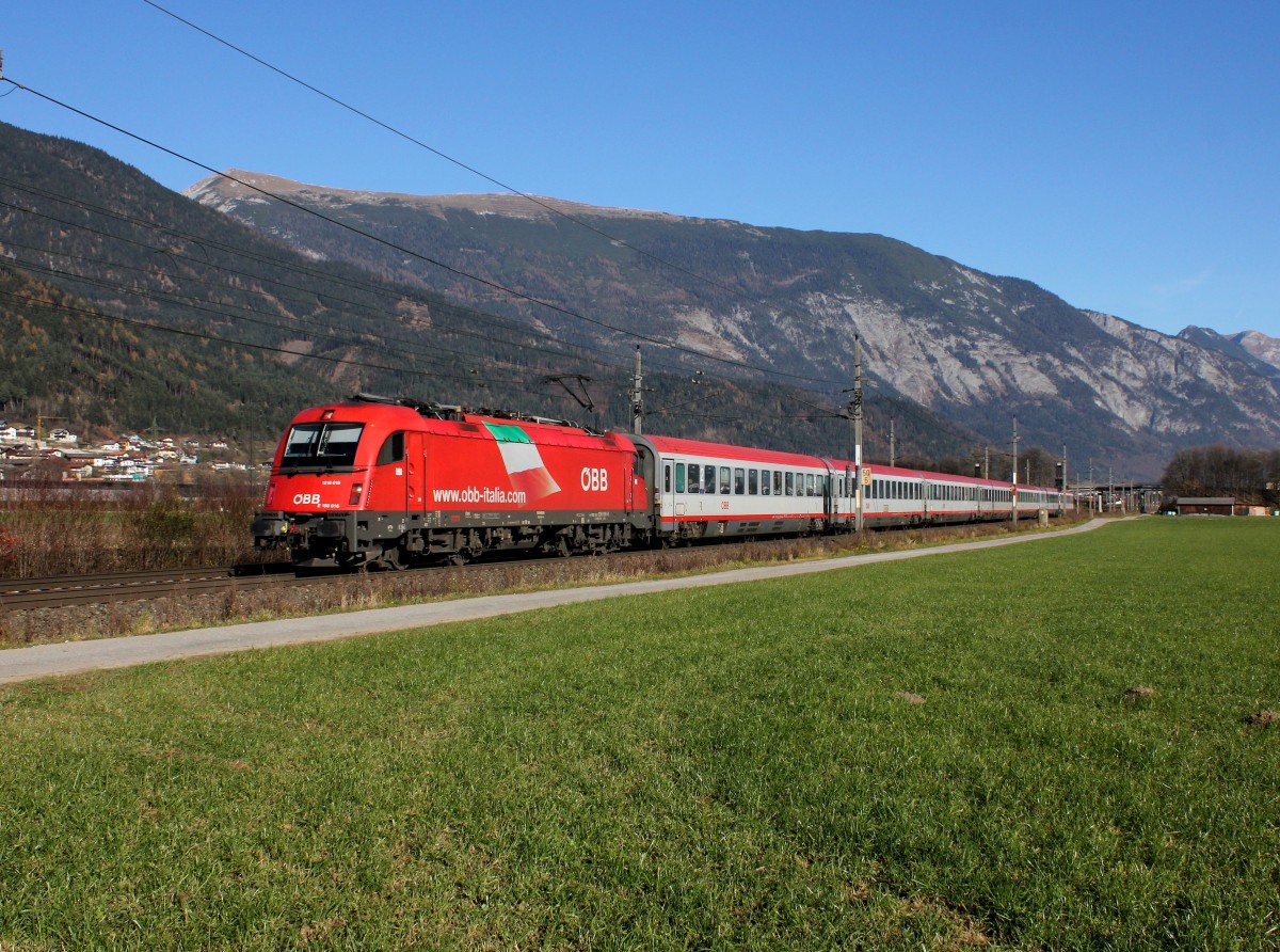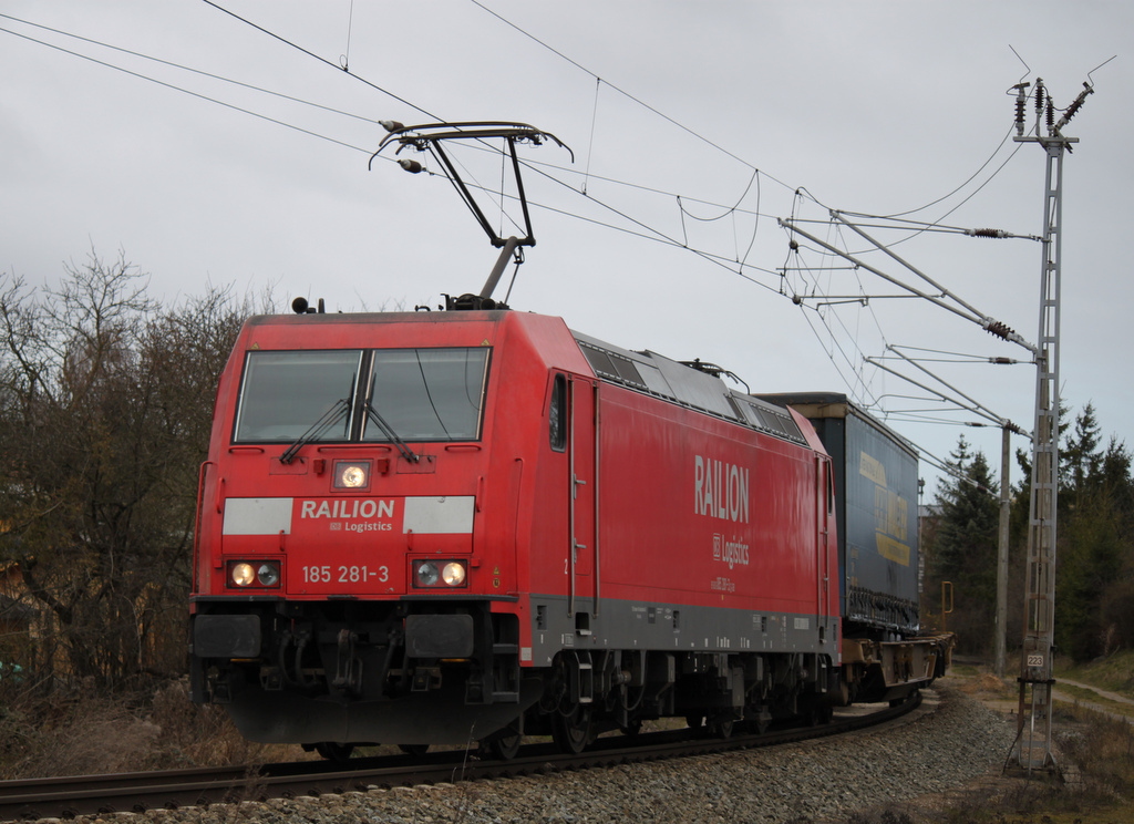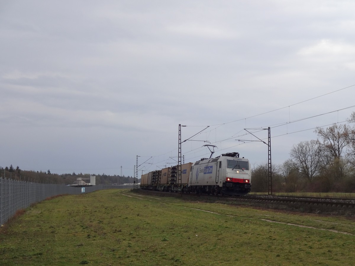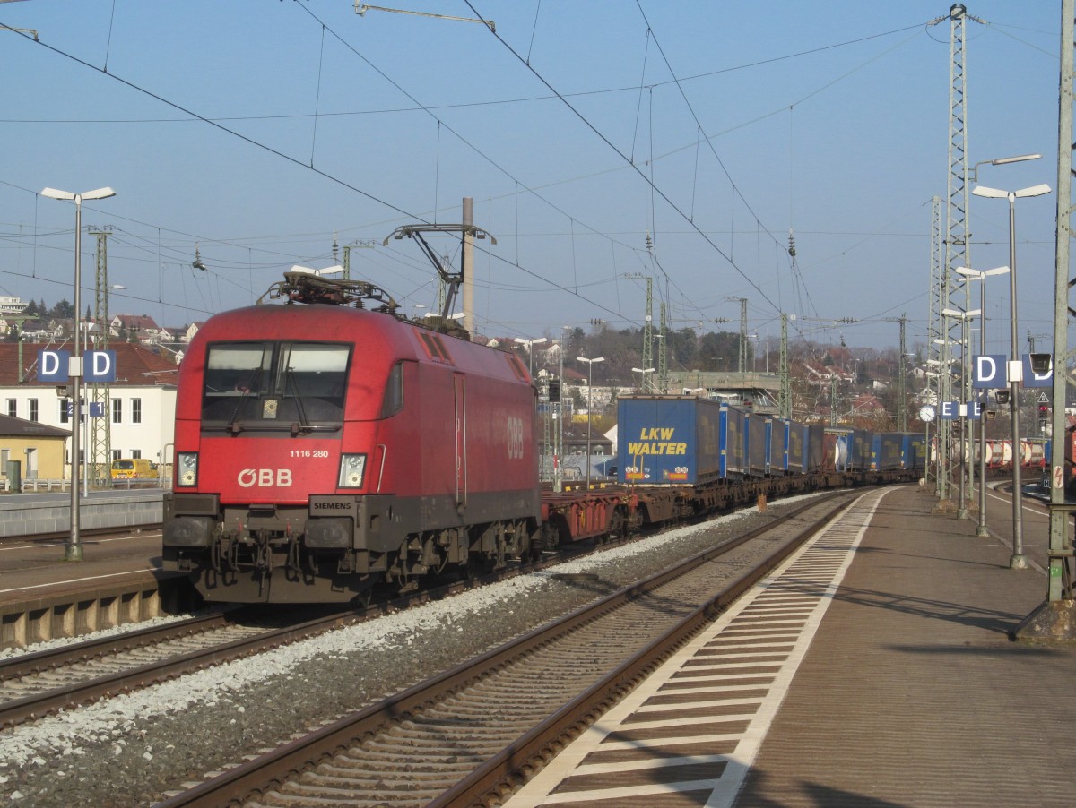 1116 280 der ÖBB zieht am 13. März 2014 einen KLV durch Ansbach in Richtung Würzburg.