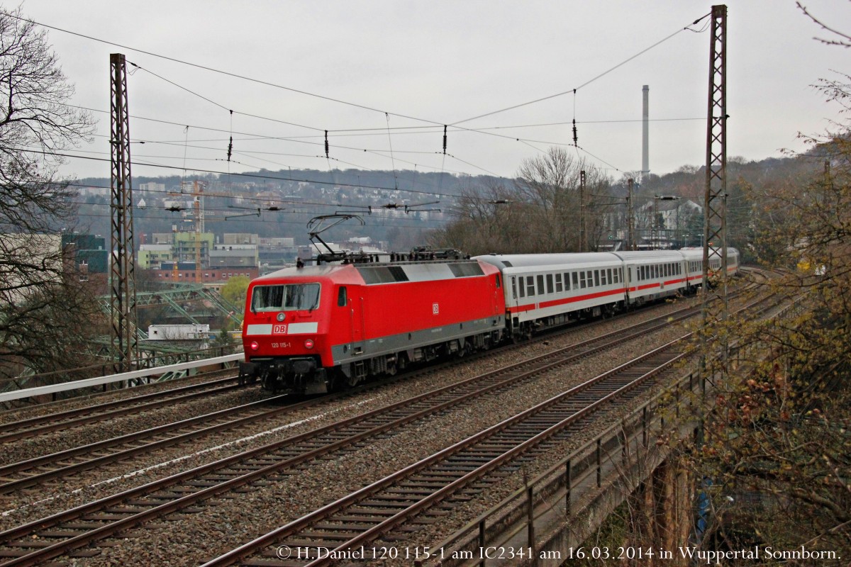 120 115-1 hing am Schluss am IC2341 am 16.03.2014 in Wuppertal Sonnborn.