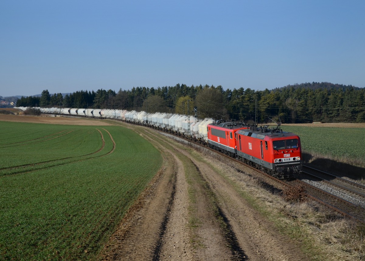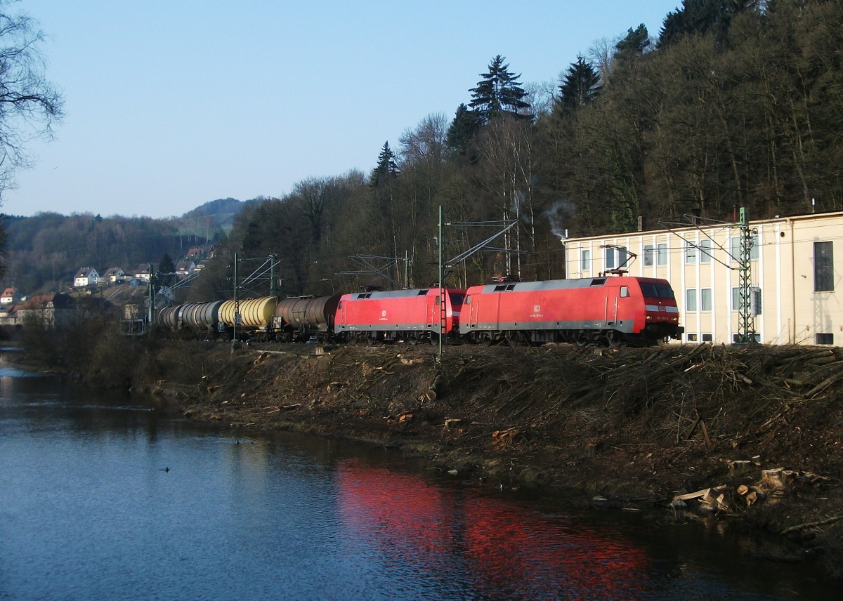 Die 151 075-9 mit Tads Richtung Treuchtlingen bei Dollnstein am 12.03.2014