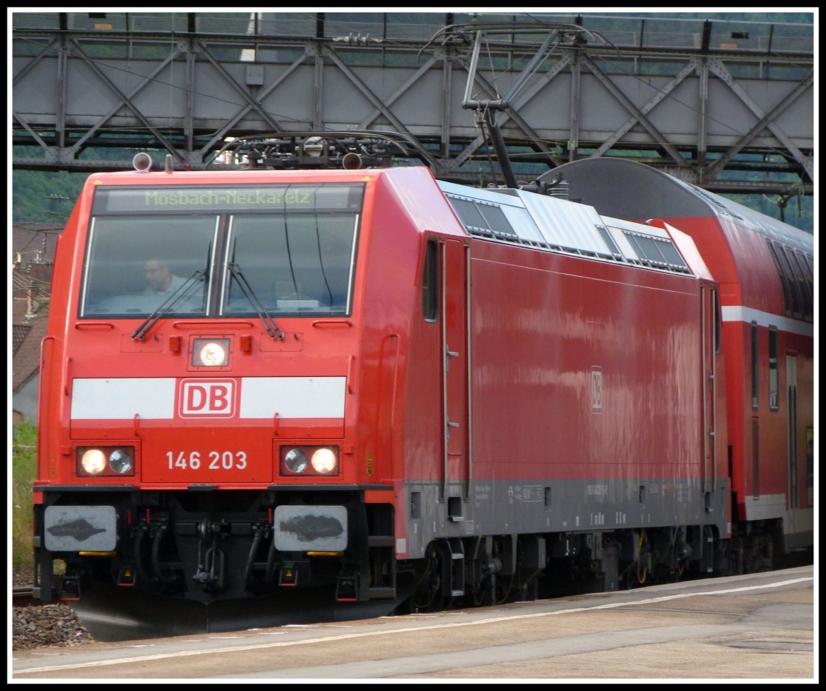 146 115 mit einem RE von Basel über Freiburg (Breisau) Hbf nach Offenburg am Nachmittag des 11.02.14 nördlich von Hügelheim.