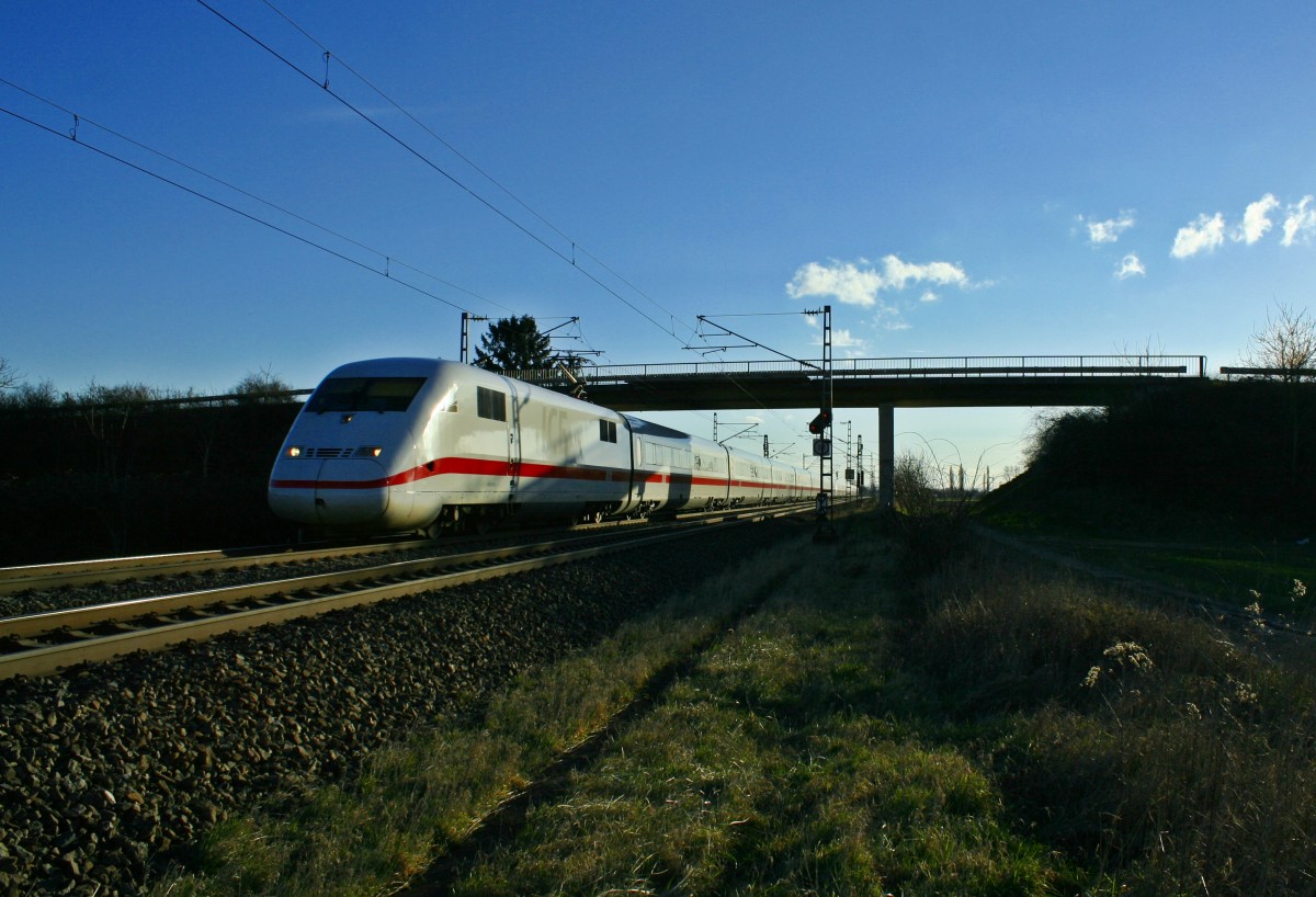 401 085-6 als ICE 75 von Hamburg-Altona nach Zürich HB am Nachmittag des 11.02.14 nördlich von Hügelheim.