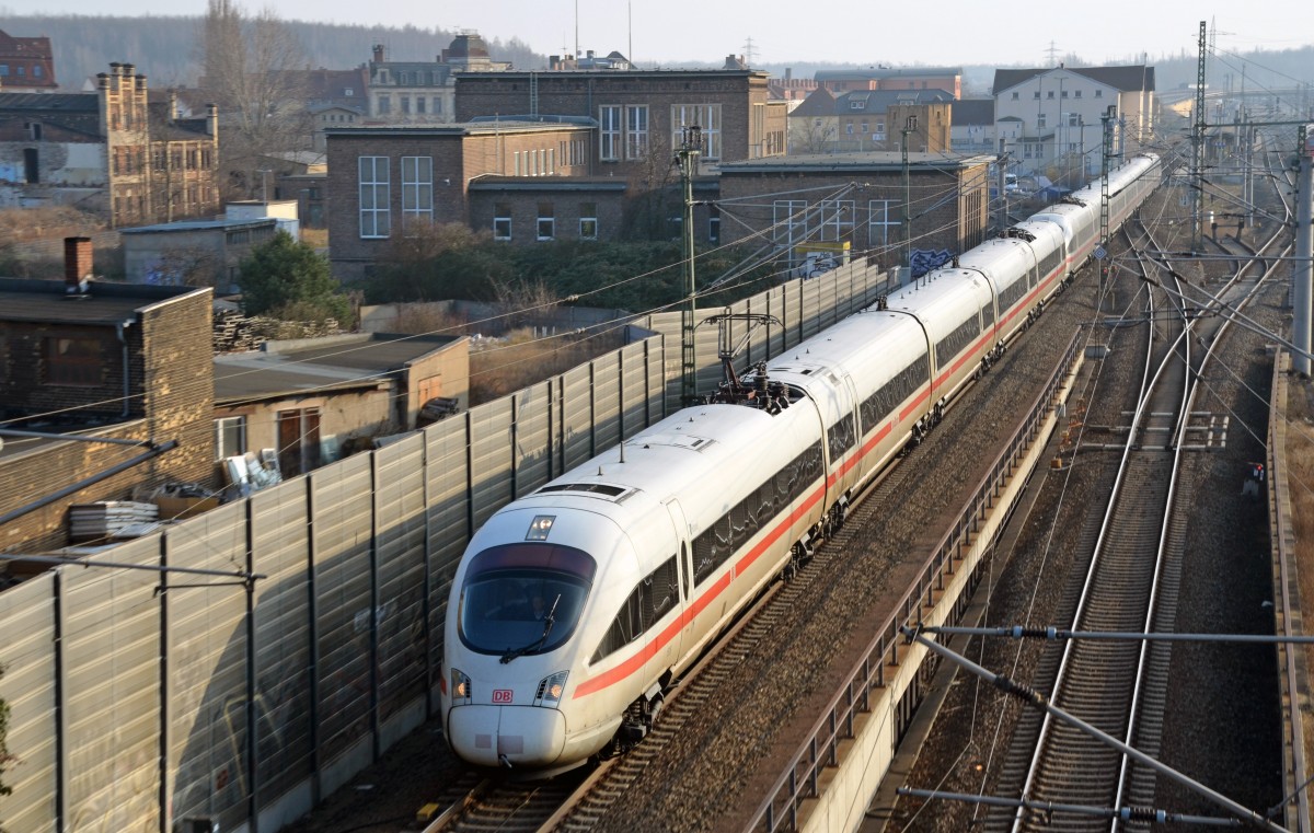 Am 08.03.14 rauscht ICE 1608/1698 durch Bitterfeld. Während der 415 in Berlin endet fährt der 411 weiter nach Hamburg-Altona.