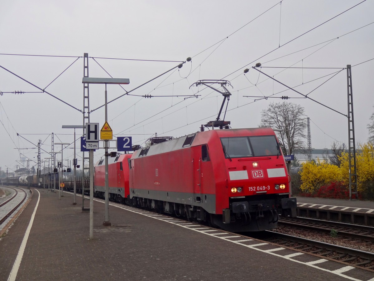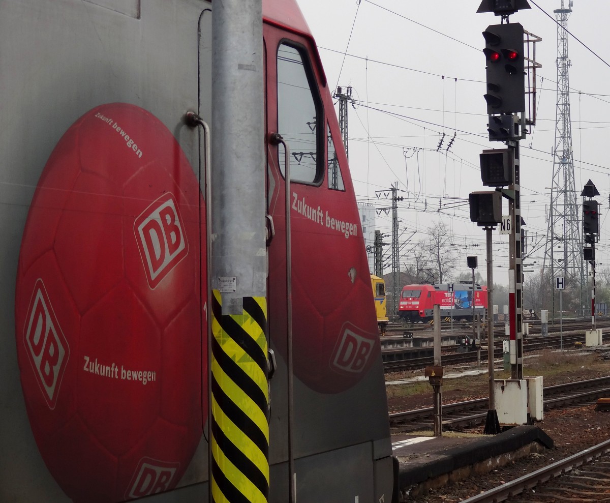 Am 16.03.2014 kam 155 073 und 155 244 mit einem Containerzug durch den Bahnhof Stendal und weiter in Richtung Magdeburg.