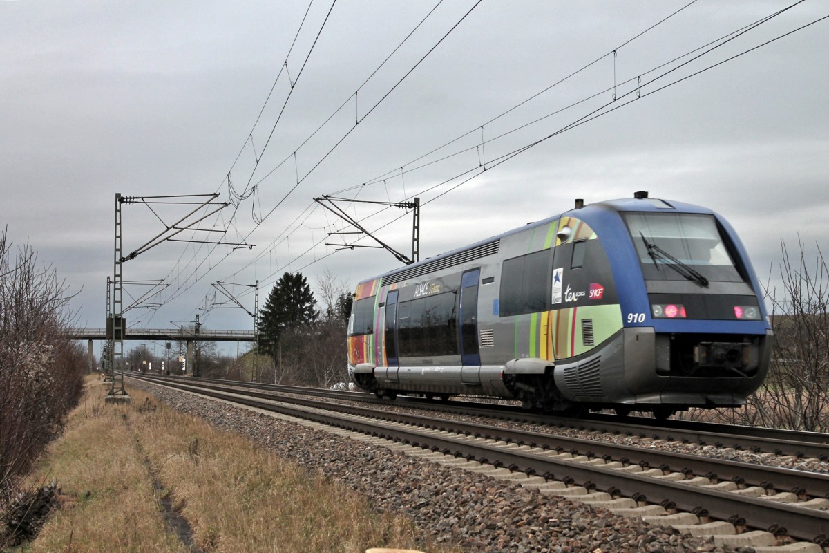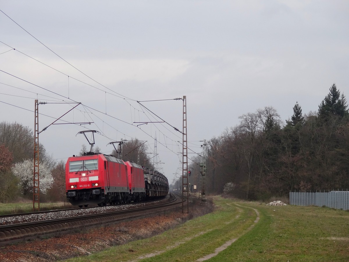 485 010-3 mit der RoLa (DGS) 43627 von Freiburg (Breisgau) Gbf nach Novara am späten Nachmittag des 11.02.14 nördlich von Hügelheim.