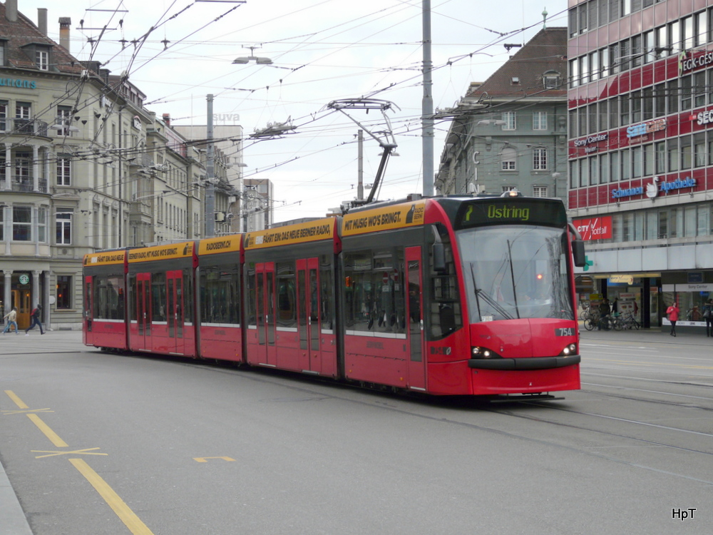 Bern mobil - Tram Be 4/6 754 unterwegs auf der Linie 7 in Bern am 01.03.2014