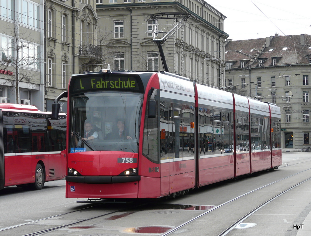 Bern mobil - Tram Be 4/6 758 unterwegs als Fahrschuhle in Bern am 01.03.2014