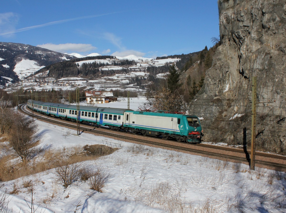 Ein FS ETR 470 ist als EC 14 von Milano nach Zürich oberhalb von Wassen unterweges. 14. März 2014