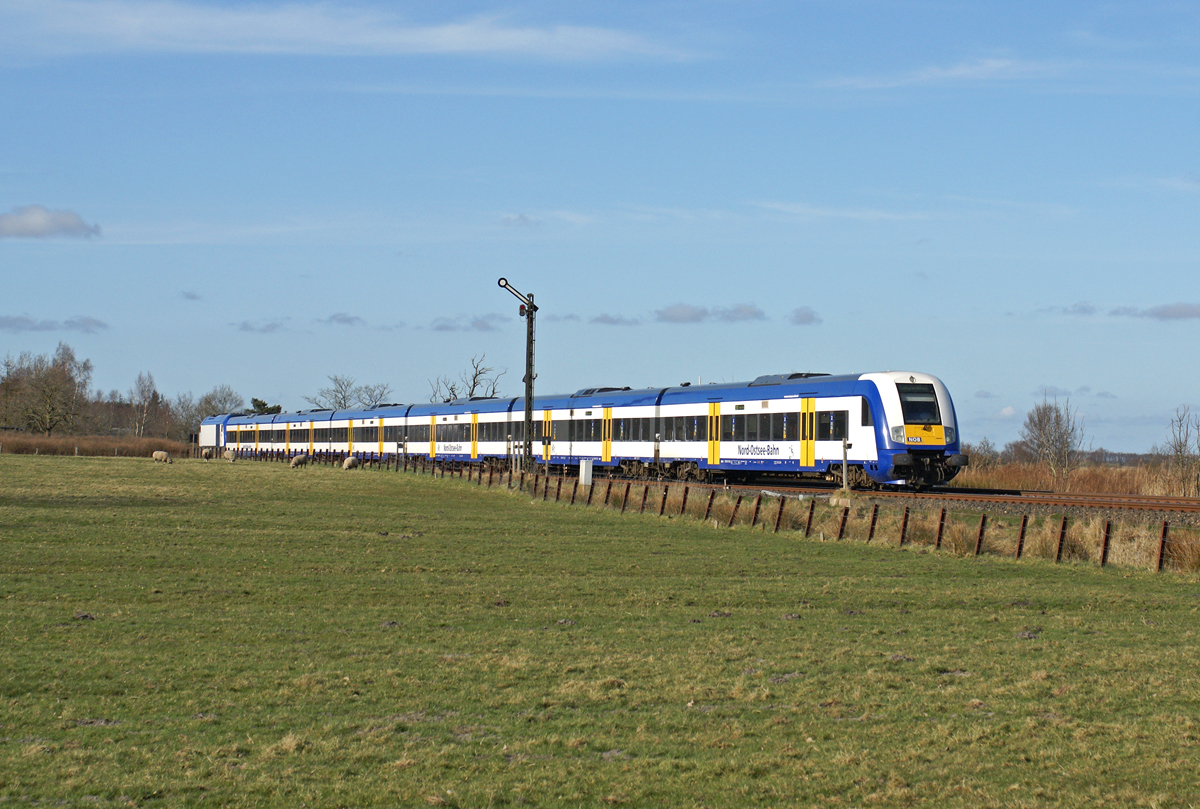 928 212 als "VLV-KREIDE-FÖRDE-EXPRESS" am 28.11.2009 bei Itzehoe/Nordoe (Strecke Itzehoe-Lägerdorf).