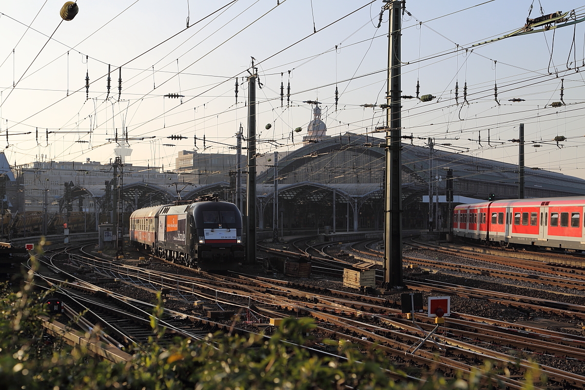 ES 64 U2-036 verläßt am späten Nachmittag des 13.03.2014 mit dem Köln-Hamburg-Express den Kölner Hauptbahnhof in Richtung Hansestadt.