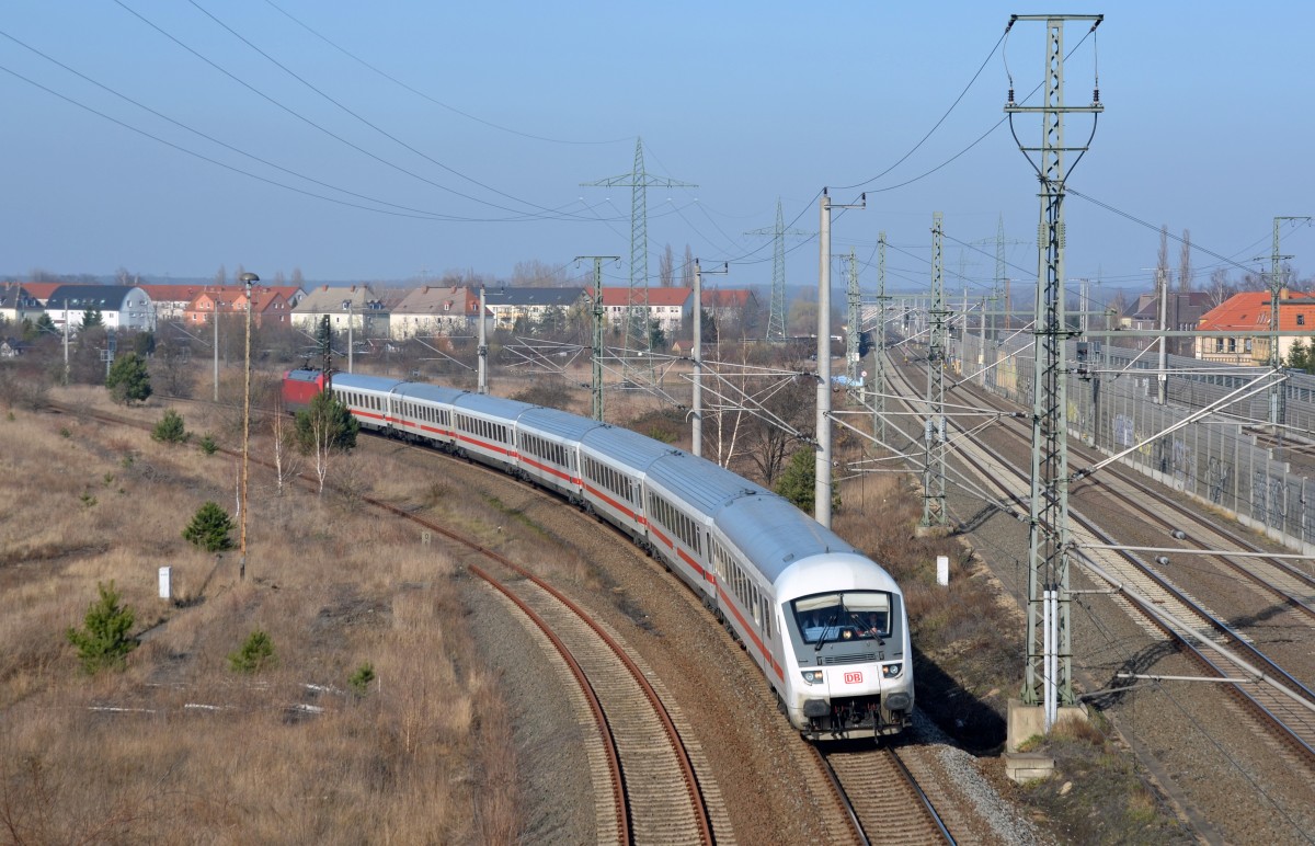 Wegen einer Streckensperrung auf der Strecke Magdeburg - Leipzig wurde IC 2037 am 09.03.14 über Dessau nach Bitterfeld und weiter nach Leipzig geführt. Der Halt in Halle(S) wurde ausgelassen.