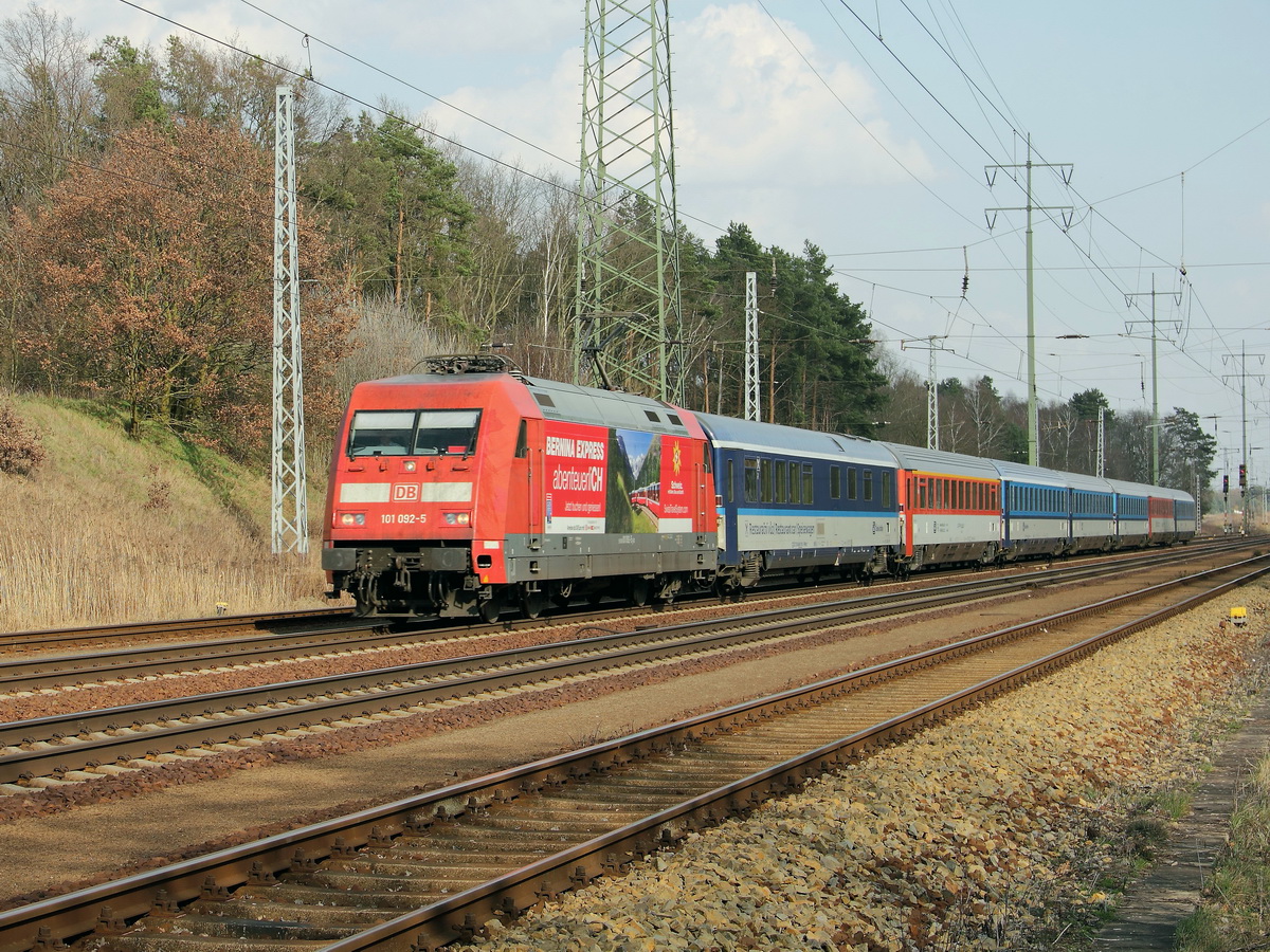 RE nach Cottbus passiert den Fotostandort unter der Autobahnbrücke.21.03.2014 21:03 Uhr.