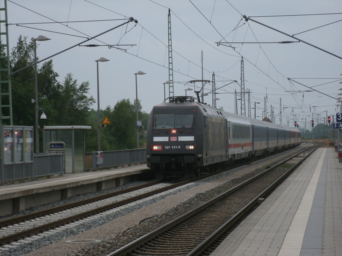 101 141 mit dem EC 378 aus Wien,am 16.Juni 2012,bei der Einfahrt in Bergen/Rügen.Der EC fuhr das letzte Stück noch bis Binz.