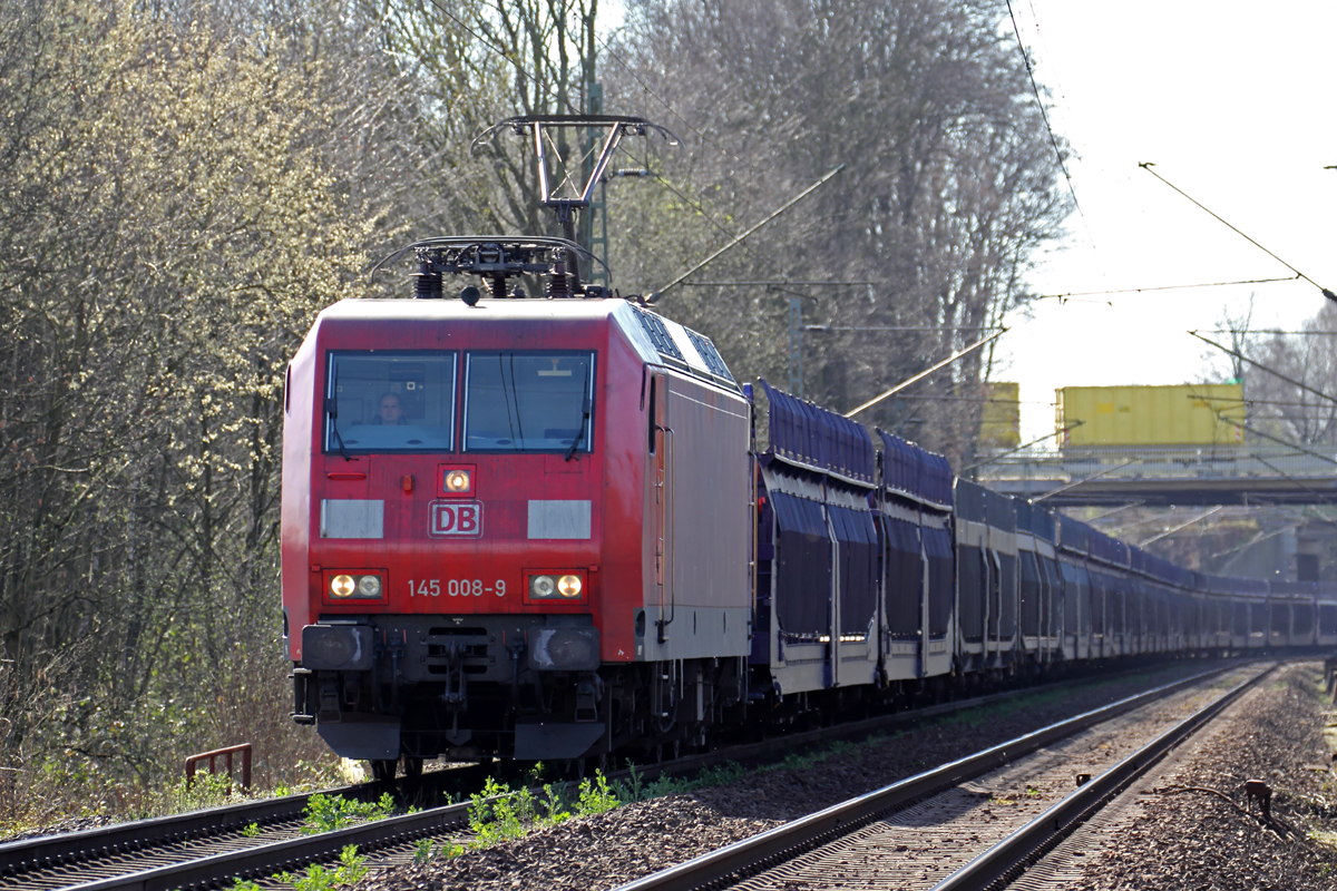 Cobra 2818 (E186 210)mit einem Mazdazug auf der KBS 485, am 21.3.2014 bei Km 17,0 , Einfahrt Herzogenrath von Mönchengladbach kommend