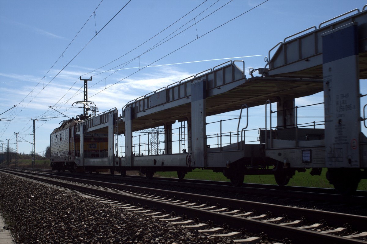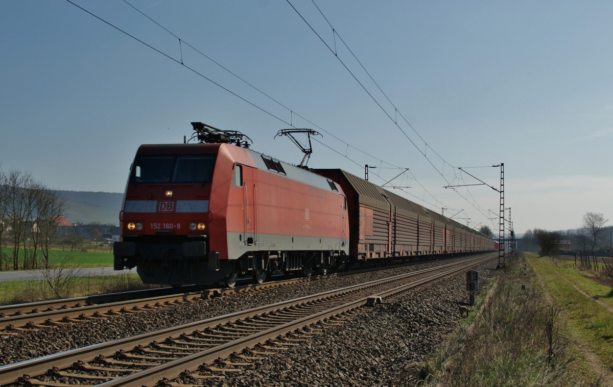 152 160-8 mit einen Autozug Richtung Norden am 11.03.14 bei Thüngersheim.