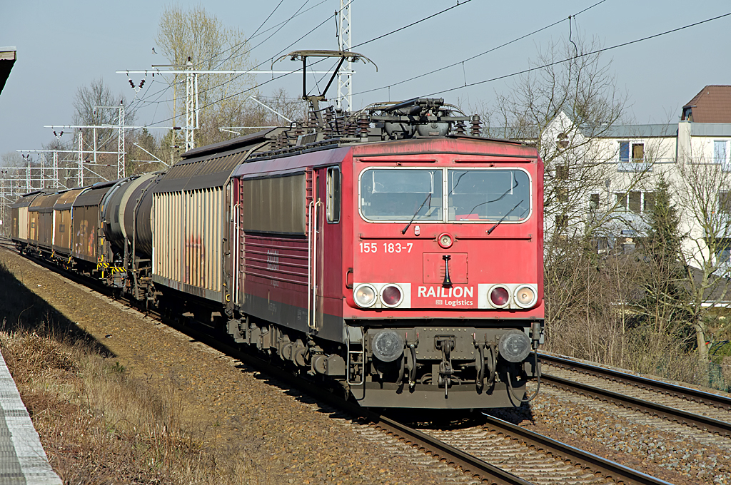 155 008-6 durchfährt am 15.03.2014 mit einem Kesselwagenzug Gladbeck West