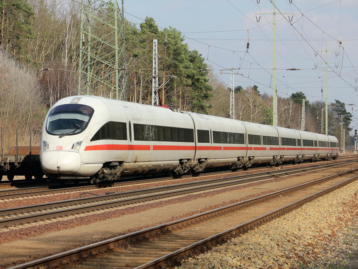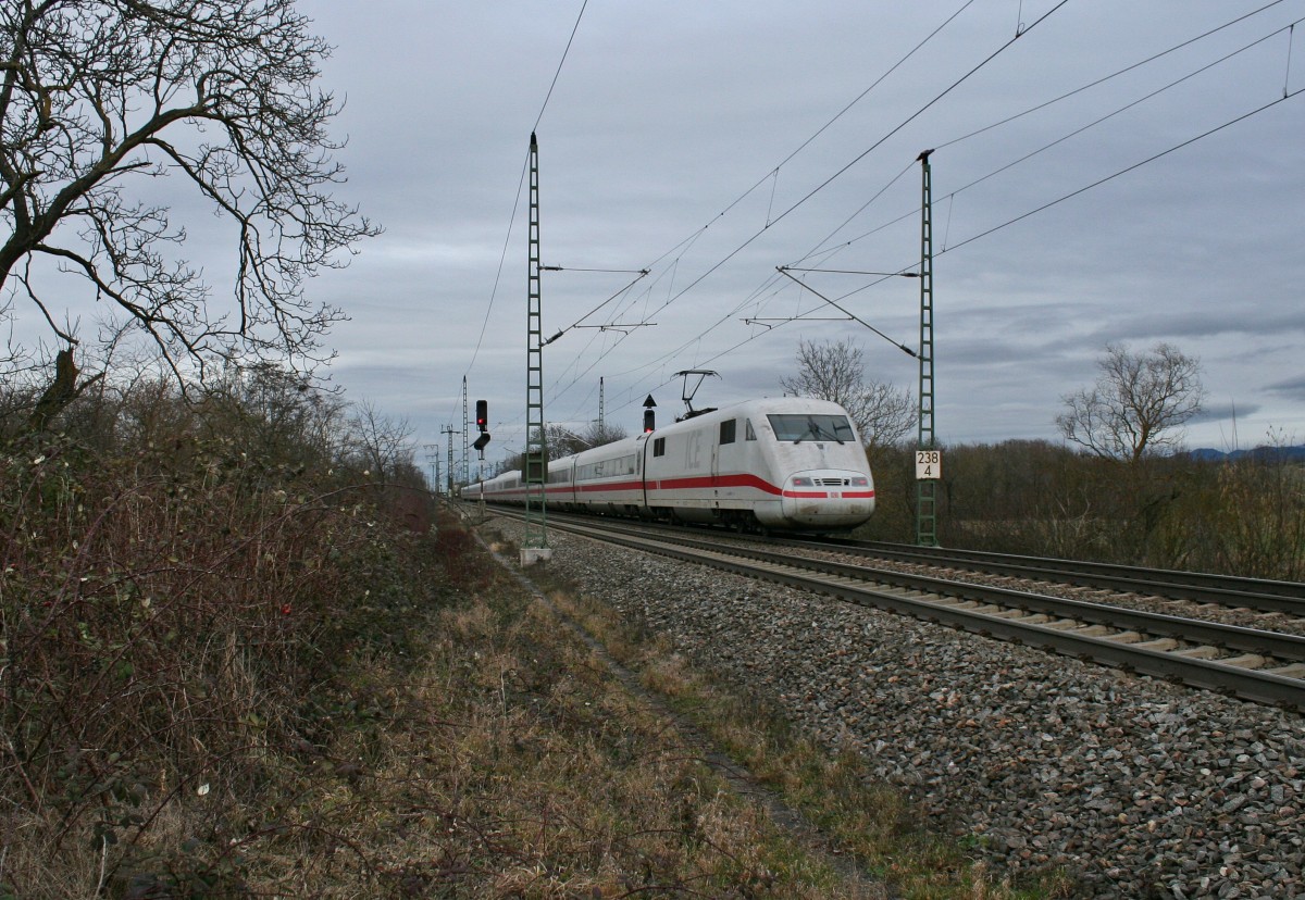 401 587-1 als ICE 274 von Basel SBB nach Berlin Ostbahnhof am Nachmittag des 14.02.14 südlich von Müllheim (Baden).