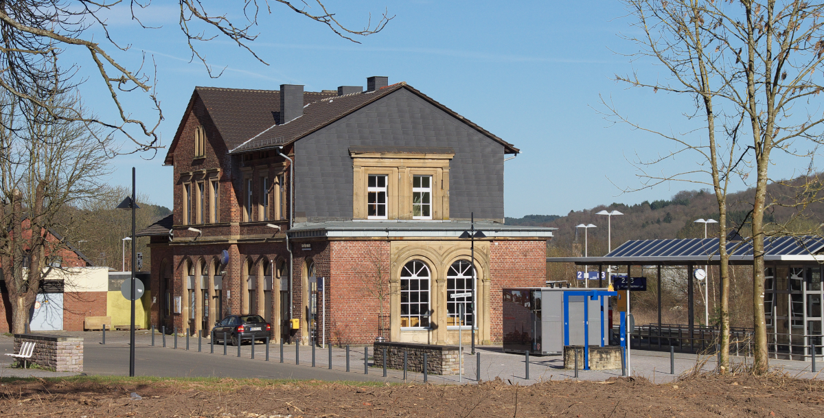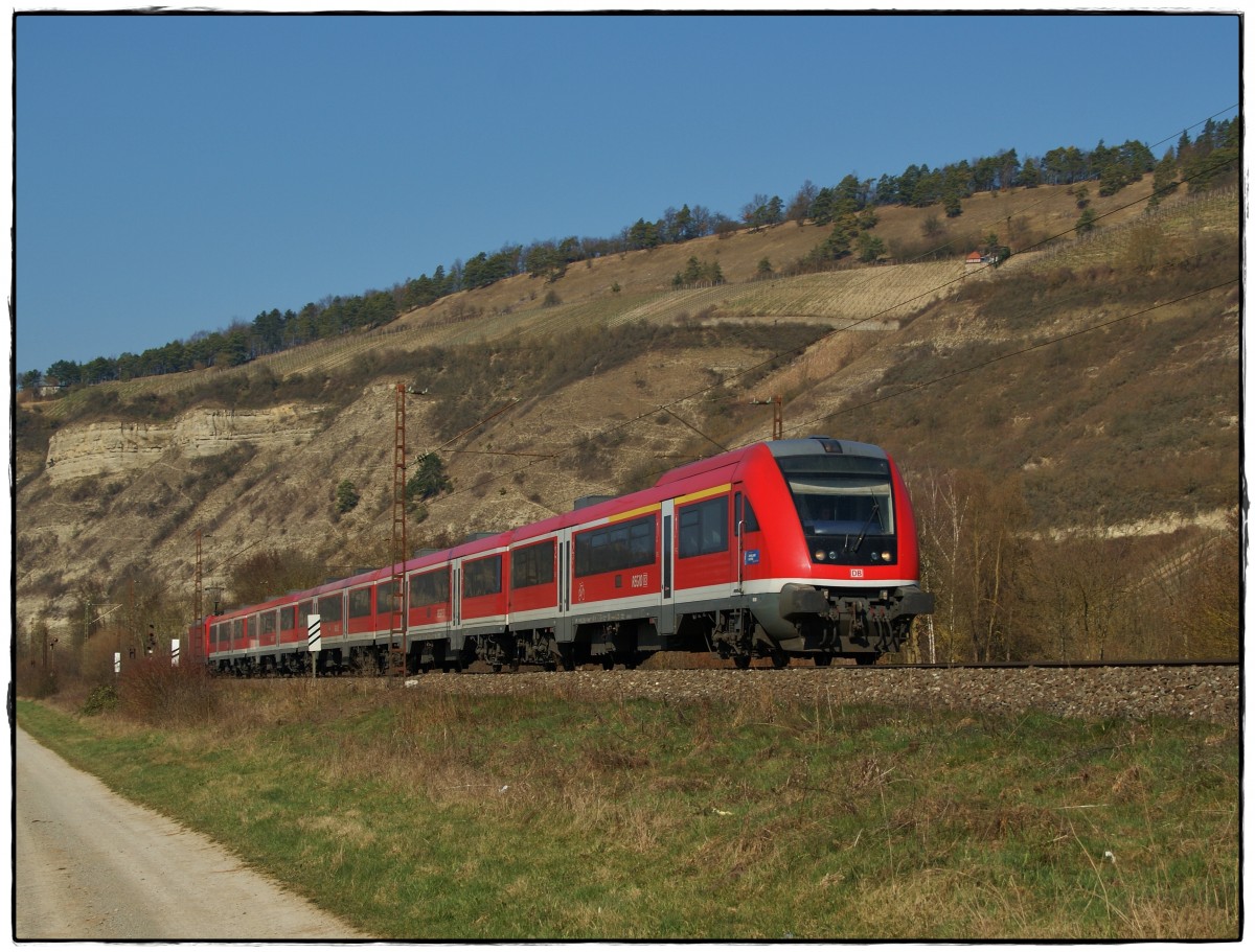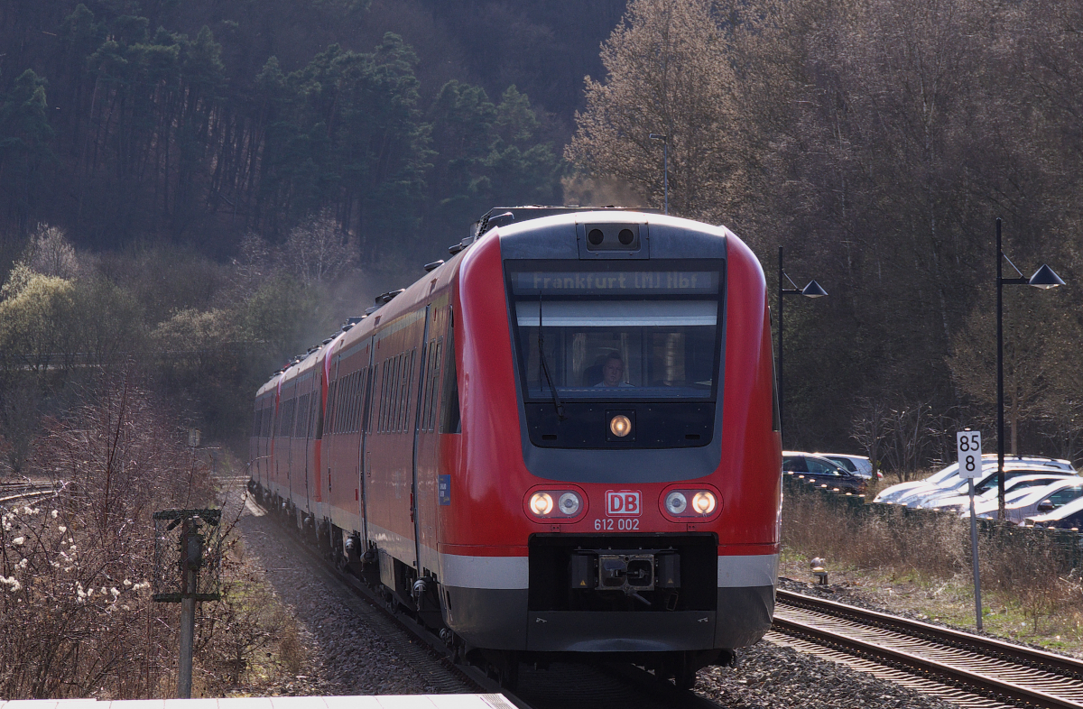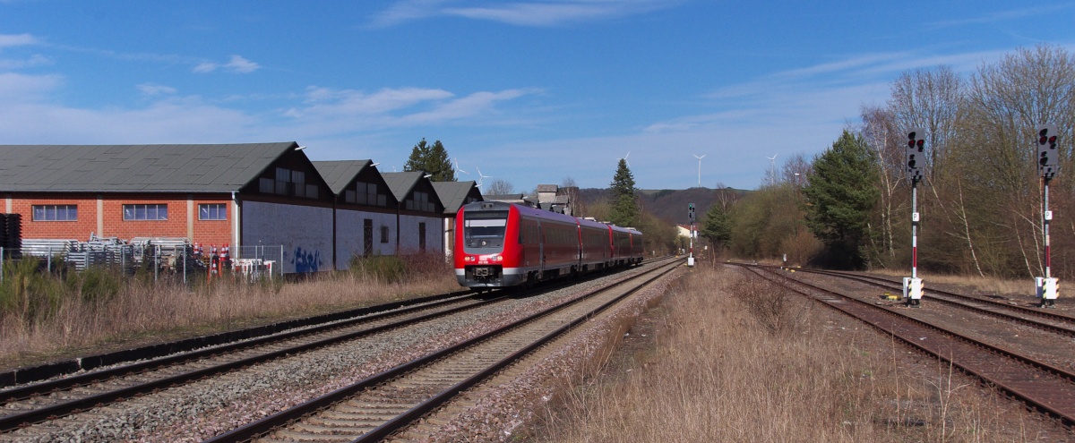 Viel Sonne im Tal der Nahe II - Am 20.03.2014 machten wir auf dem Weg nach Bad Sobernheim noch Station in Neubrücke an der Nahe. Auf der Nahetalbahn gibt es bis auf den Militärverkehr nach Baumholder keinen Güterverkehr mehr, obwohl viele große Firmen an der Bahnstrecke liegen und sogar bis MORA C einen Gleisanschluß hatten. Der Bahnhof Neubrücke Nahe hatte mal 15 Gleise, einen großen Güterbereich, eine Drehscheibe und von hier ging bis 1991 die Lokalbahn nach Birkenfeld ab. Der Bahnhof Neubrücke zeigt sich sauber, modern, behindertengerecht und besitzt sogar noch einen Warteraum. Das Gebäude, die Bahnsteige und das Umfeld sind Graffiti frei und werben somit für den Bahnverkehr. 628 494 ist als RB von Mainz nach Türkismühle unterwegs. Nach dem Halt in Neubrücke Nahe wird er gleich die Grenze zum Saarland erreichen. Bahnstrecke 3511 Bingerbrück - Saarbrücken Hbf.