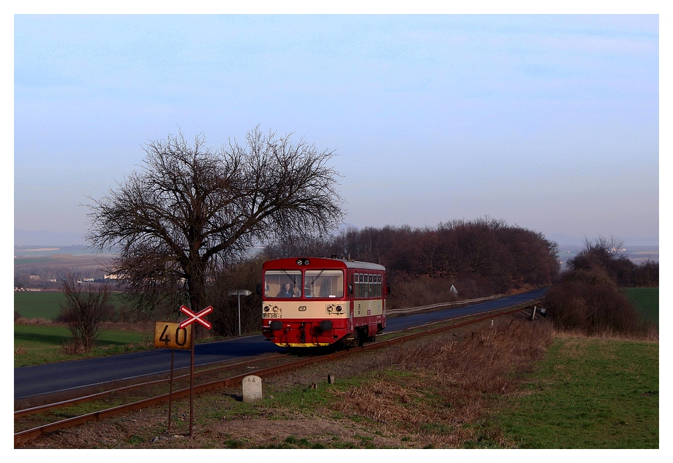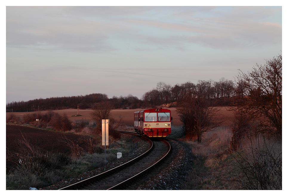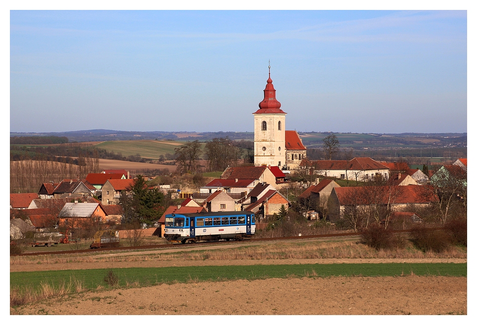 809 657-0 mit den Os 12318 nach Straškov unterwegs in Kostomlaty pod Řípem am 20.03.2014
