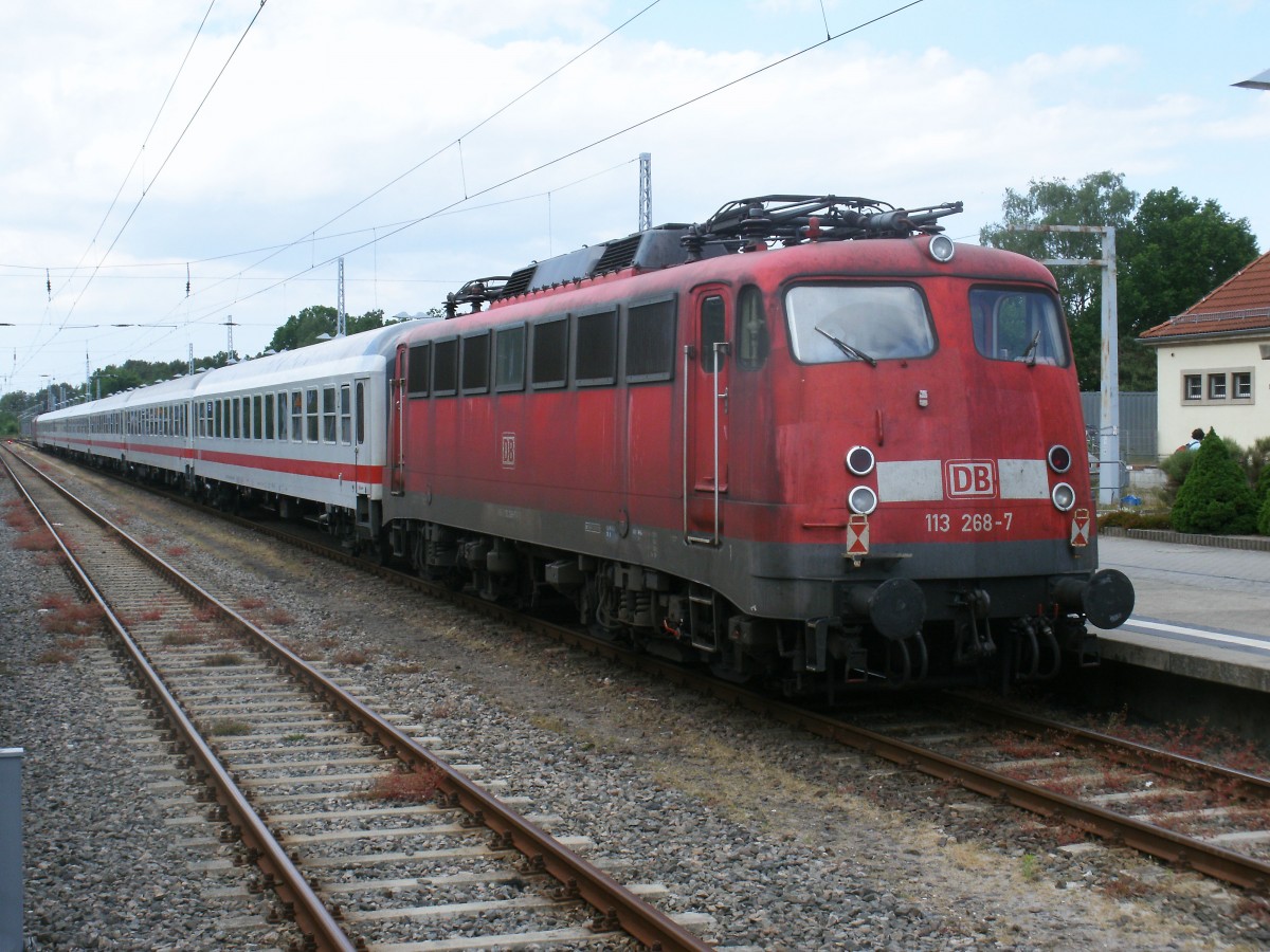 Als Schlußlok fuhr 113 268,am 09.Juni 2012,von Binz nach Stralsund.Hier stand die 113 abgebügelt in Binz.
