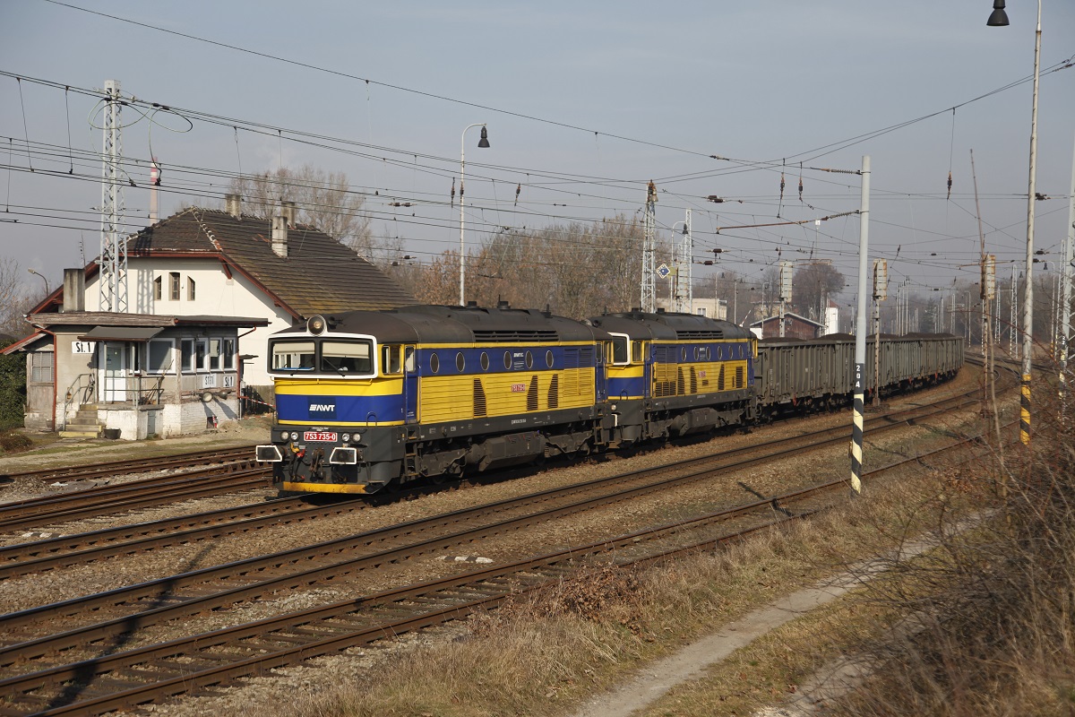 854 027-0 mit den MOs 9511 im Bf Měšice u Prahy nach Praha-Vršovice 20.03.2014