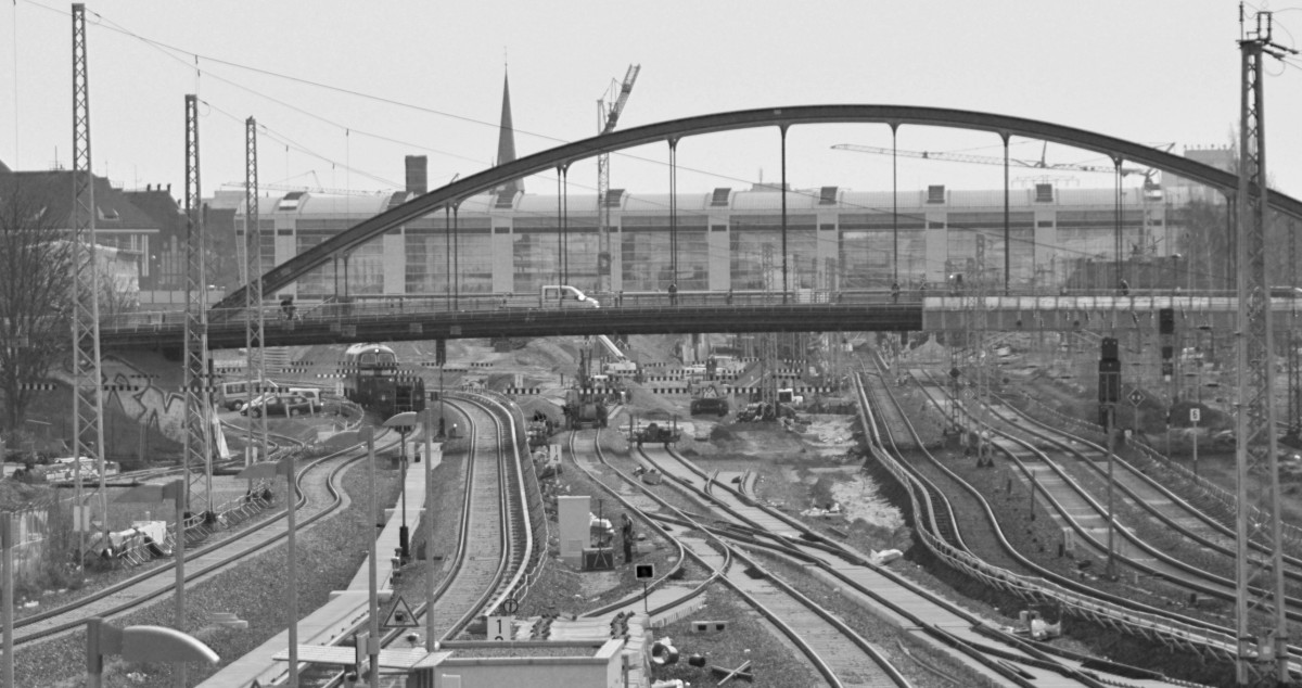 dieses Bild aufgenommen am 21.03.2014 möchte ich in s/w abbilden . hier ist die Umbauphase vom Bahnhof Warschauer Straße zu sehen der zum Gesamtprojekt Ostkreuz gehört. machen wir mal ein Bild in 2015 !?