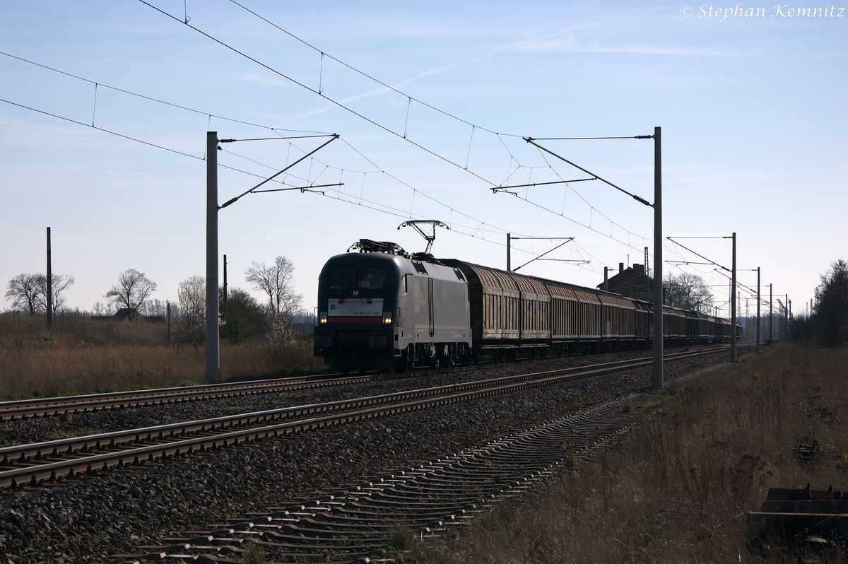 ES 64 U2 - 097 (182 597-5) MRCE Dispolok GmbH für TXL - TX Logistik AG mit einem H-Wagen Ganzzug in Demker und fuhr in Richtung Stendal weiter. 20.03.2014
