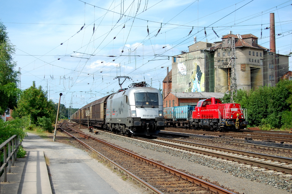 ES 64 U2-025 hing als schlepplok am HKX im bhf hh-harburg 07.03.14