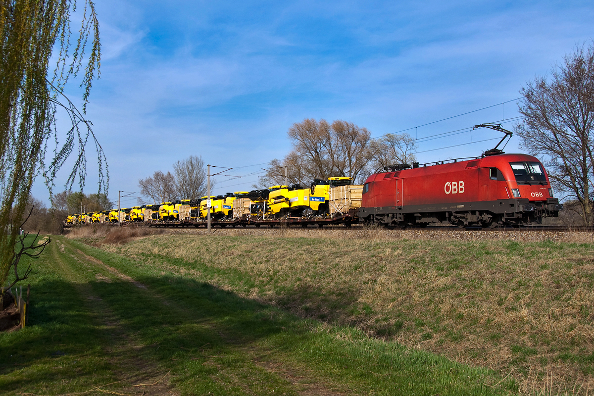 1116 025, ist mit einem Güterzug kurz vor Sierndorf an der March in Richtung Gänserndorf unterwegs. Die Aufnahme entstand am 21.03.2014.