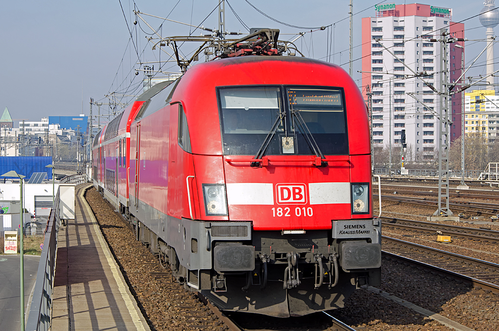 182 010-9 ( 91 80 6182 010-9 D-DB ), Krauss-Maffei AG, [D]-München 20307, Baujahr 2001, Eigner: DB Regio AG - Region Nordost, Betreiber: Regionalbereich Berlin/Brandenburg, [D]-Potsdam, Bh Cottbus, 14.03.2014, Berlin-Ostbahnhof