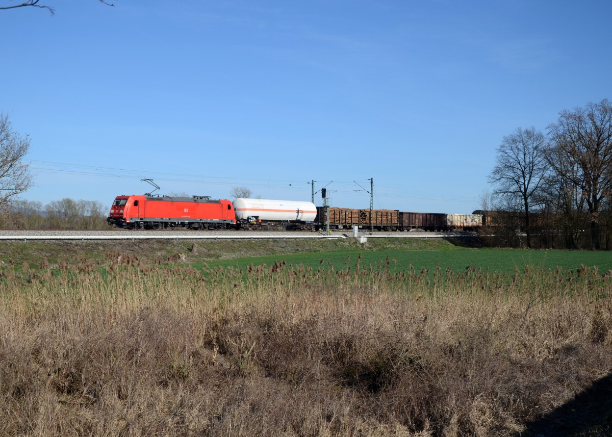 185 248 mit einem Güterzug am 20.03.2014 bei Kühmoos.