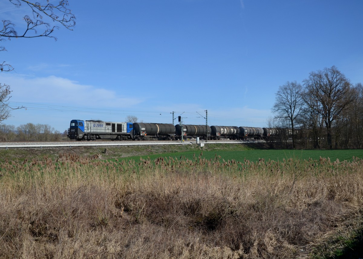 2016 063-6 verlässt mit dem Kesselwagenzug,GAG47850, den Zwischenhaltebahnhof Ried; 130314