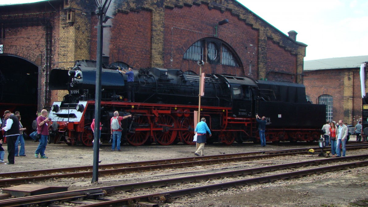 Zu sehen ist 01 1533-7 (01 533) im Außengelände der Lokwelt Freilassing. Die Lok wird gerade vom Personal abgeschmiert und für die Heimfahrt vorbereitet.