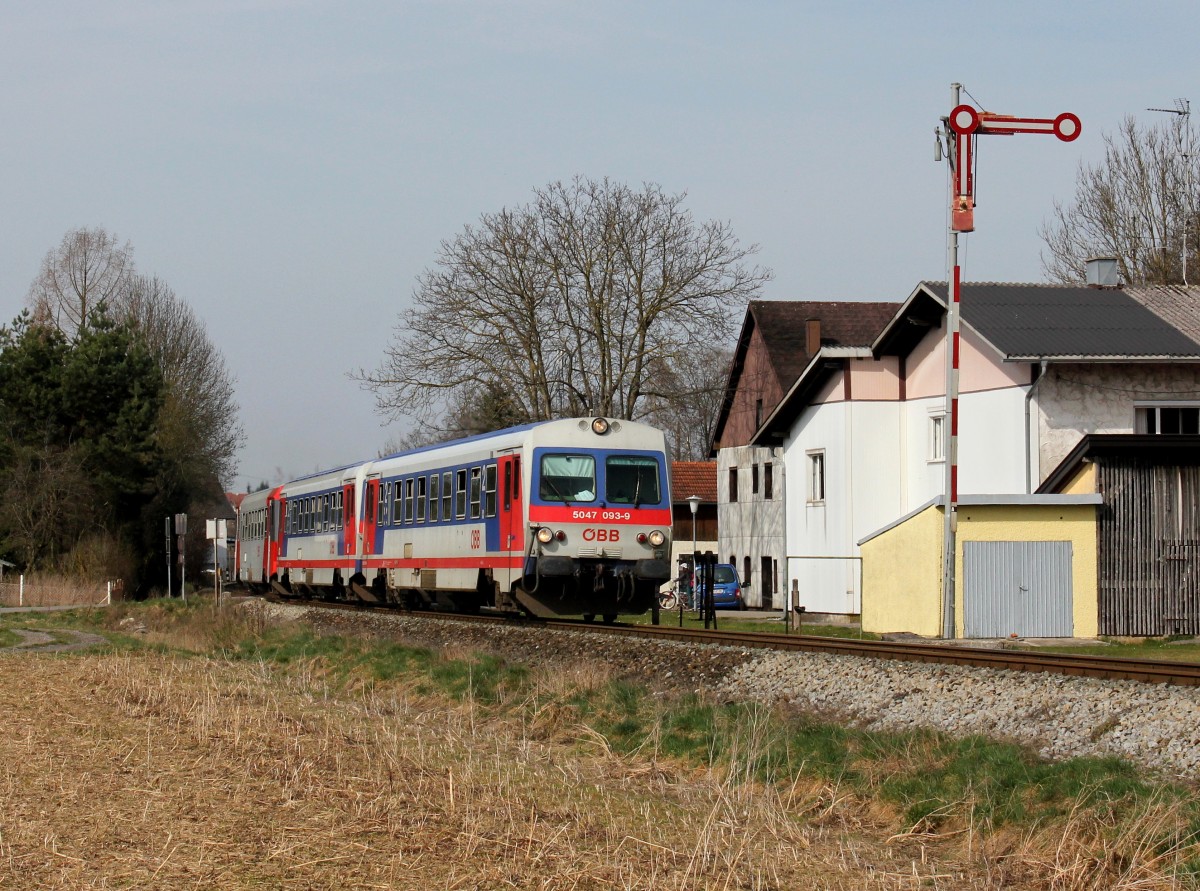 Der 5047 093, der 5047 073 und der 5047 097 als R am 21.03.2014 unterwegs bei Mauerkirchen.