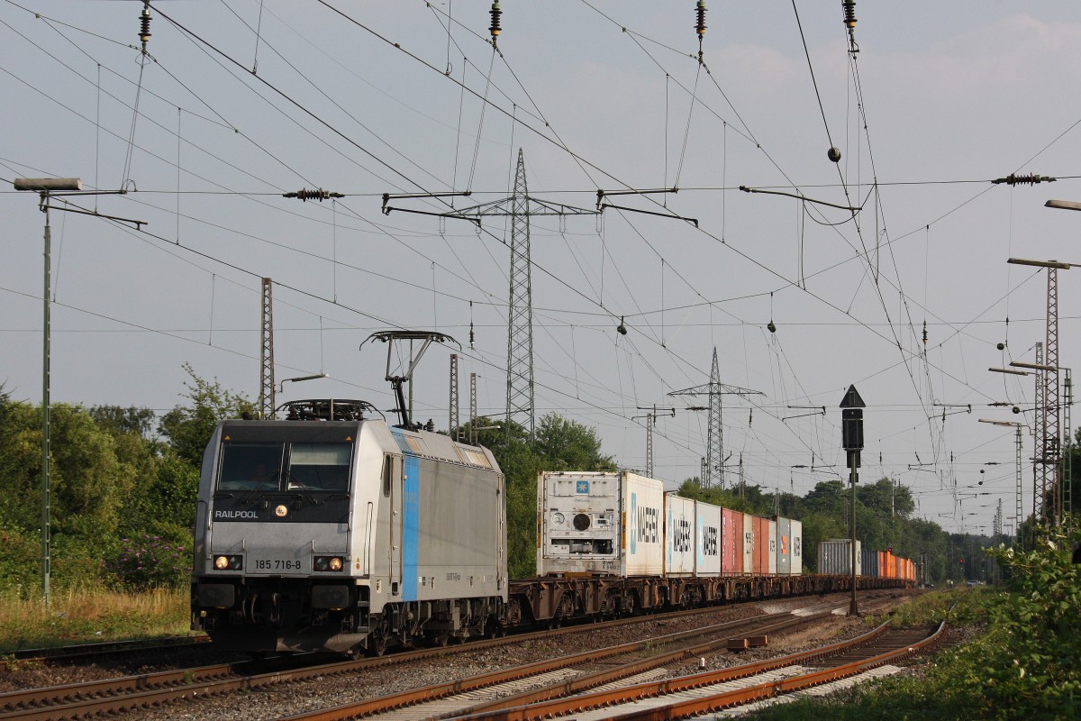 Railpool/boxXpress.de 185 716 am 15.7.13 mit dem DGS 69274 von Mannheim Hgbf nach Weddewarder Tief in Ratingen-Lintorf.