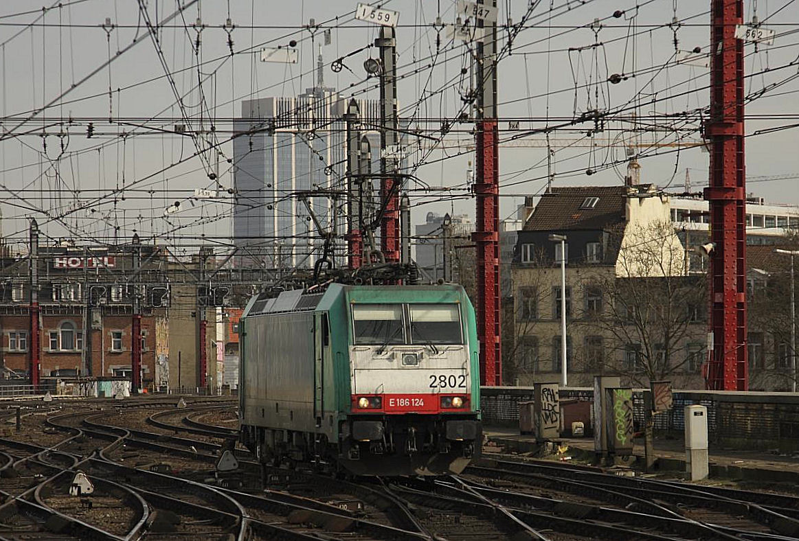 SNCB 2802, auch als E 186124 registriert, rangiert am 19.03.2014 im Gleisvorfeld