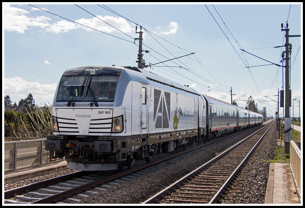 CD 380 016 ist mit dem EC 75 nach Wr. Neustadt unterwegs. Die Aufnahme entstand am 21.03.2014 kurz vor Tallesbrunn.