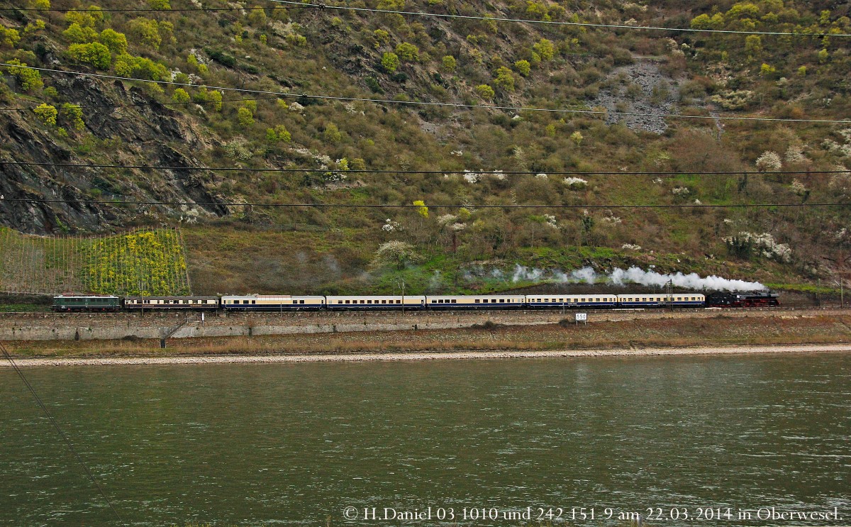 Alle, die nochmal die gute alte 103 235 fotografieren wollen, sollten sich das demnächst einplanen, denn die Radsätze sind am Grenzmaß und wenn keine guten Radsätze bei anderen Loks gefunden werden (was eigentlich sicher ist), kann es gut sein dass die Lok bei häufigem Einsatz schon diesen Sommer oder sogar die nächsten Wochen abgestellt wird und nicht mehr bis zum Fristablauf in 2015 fährt... Nur so als Hinweis ;-) Die Lok wurde nach München überführt, wahrscheinlich um die erfahrene münchner Werkstatt mal ran zu lassen, denn 103 245 fährt meines Wissens sehr zuverlässig. 103 235-8 fuhr am 11.11.2013 mit dem IC 118 durch den Ludwigshafener Hbf.