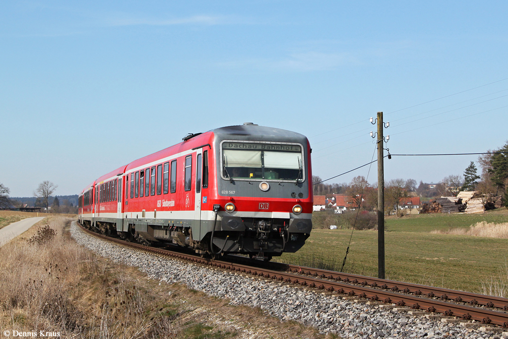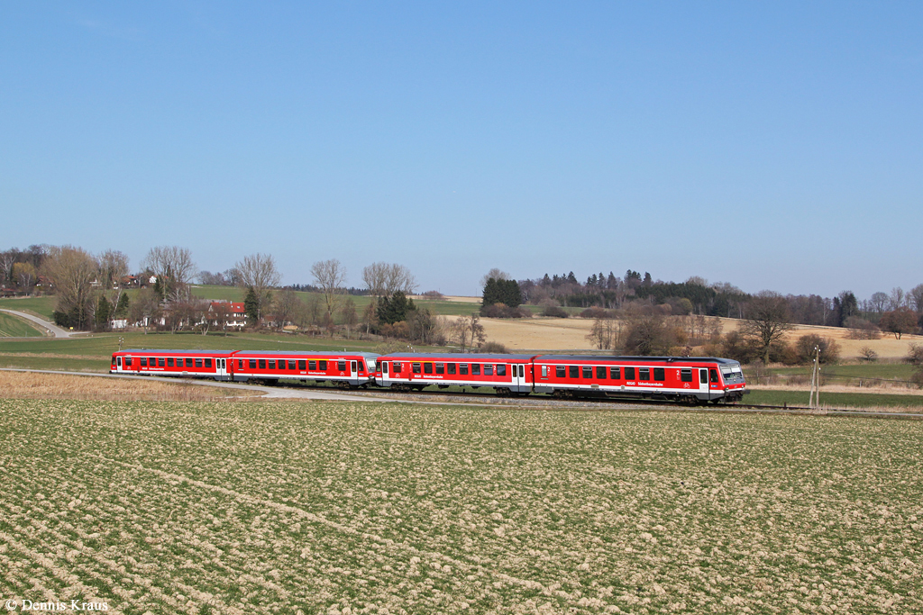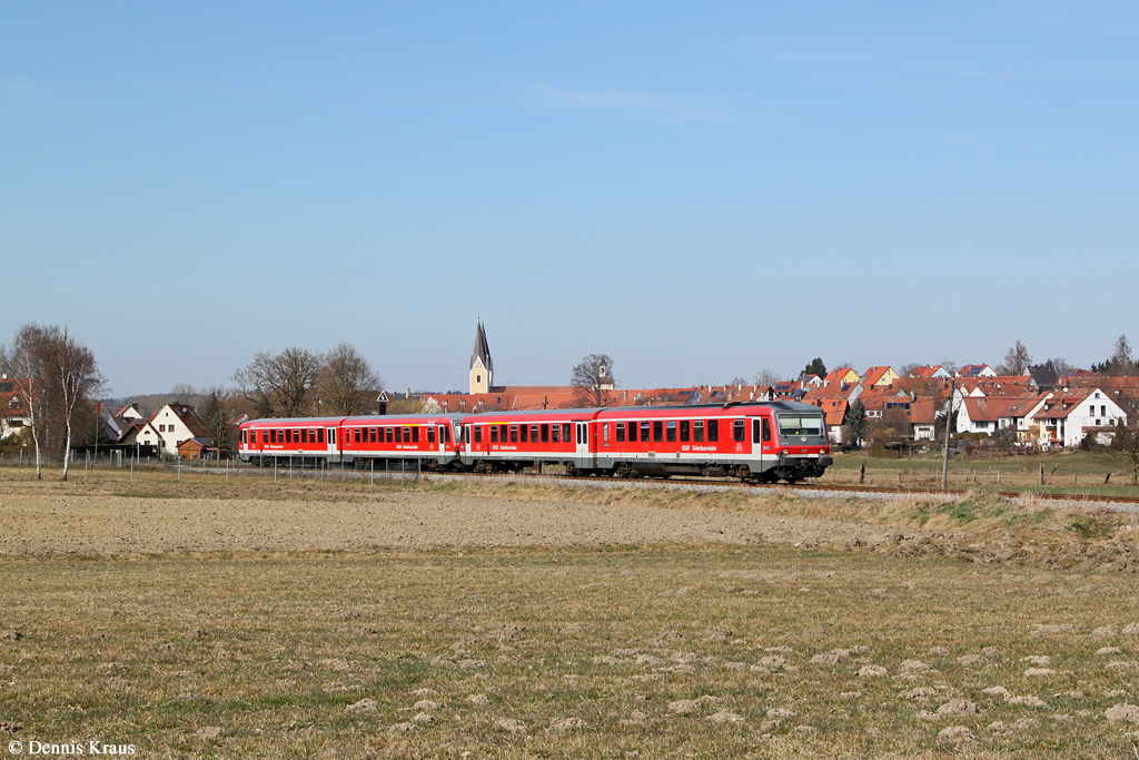 Er fährt hier auf der KBS 443  Rothaarbahn  bei km 22,5, auf dieser Strecke gibt es noch Telegrafenleitungen. Ab 2015 werden sich hier die Farben der Triebwagen stark verändern, denn dann betriebt die HLB  (Hessischen Landesbahn) das Dieselnetz in der Region.