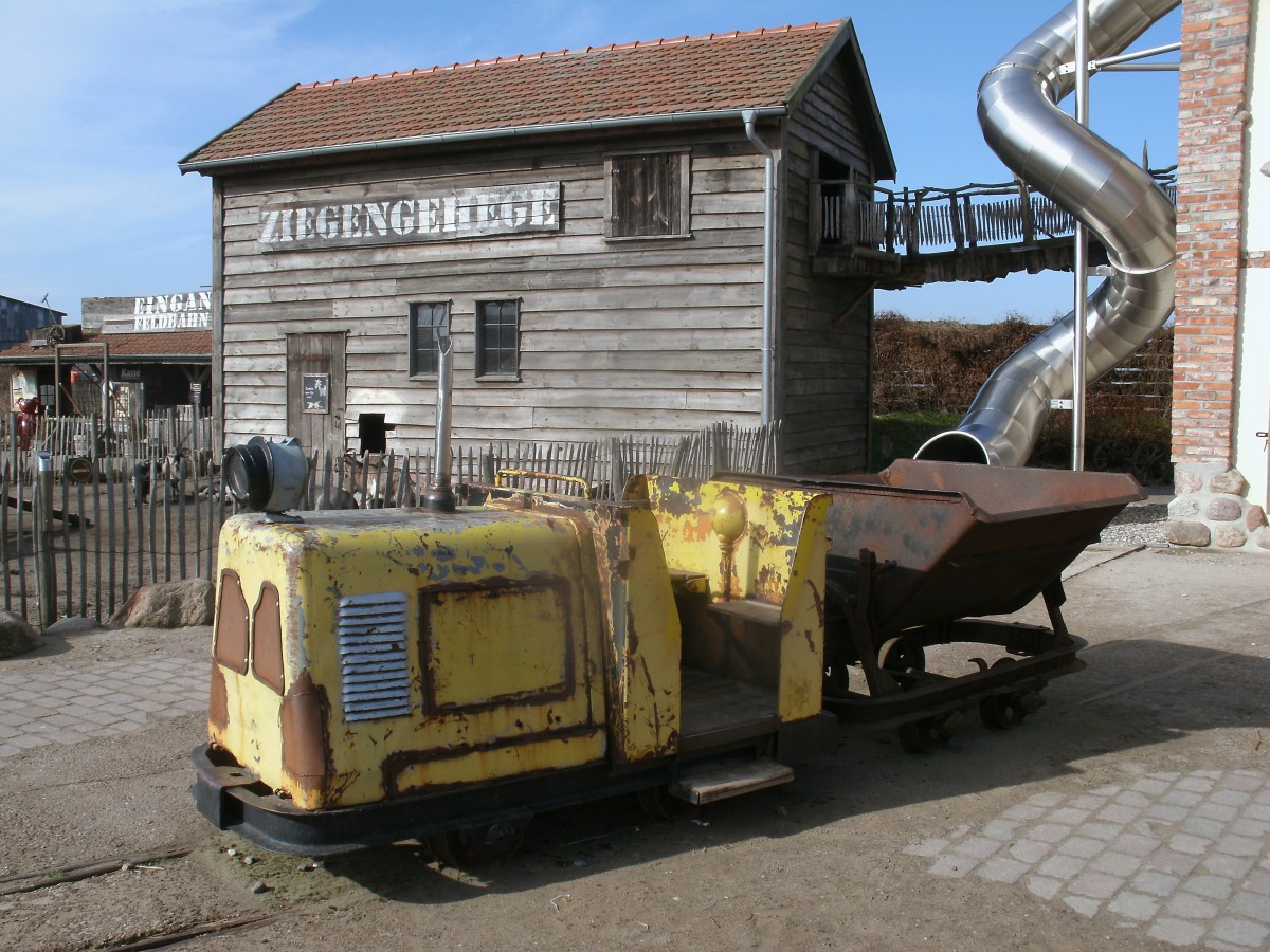 Auf dem  Karl`s Erlebnishof bei Rövershagen fährt für die Kinder diese kleine Feldbahn.Aufgenommen am 23.März 2014.
