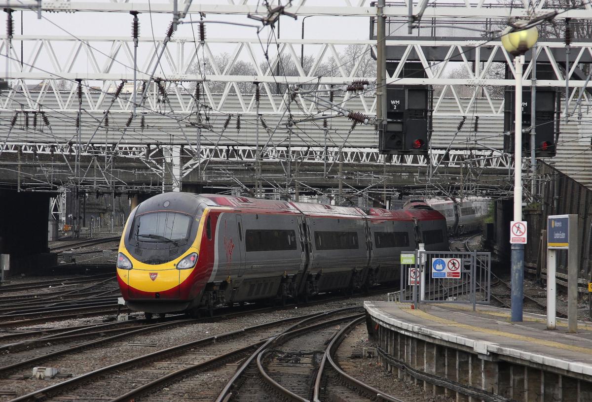 Ein Virgin OPendolino verlässt am 20.3.2014 den Bahnhof London Euston.