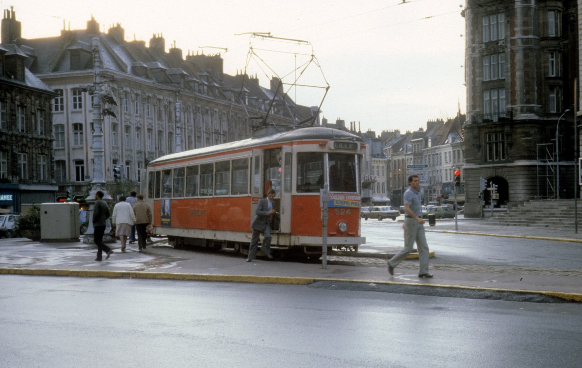 Lille SNERLT / COTRALI Triebwagen 524 Place du Théatre im Juni 1982.