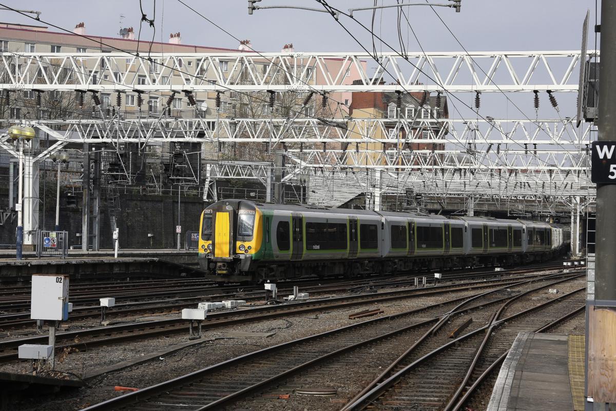 Midland Triebzug 350123 fährt am 20.03.2014 in den Bahnhof London Euston ein.