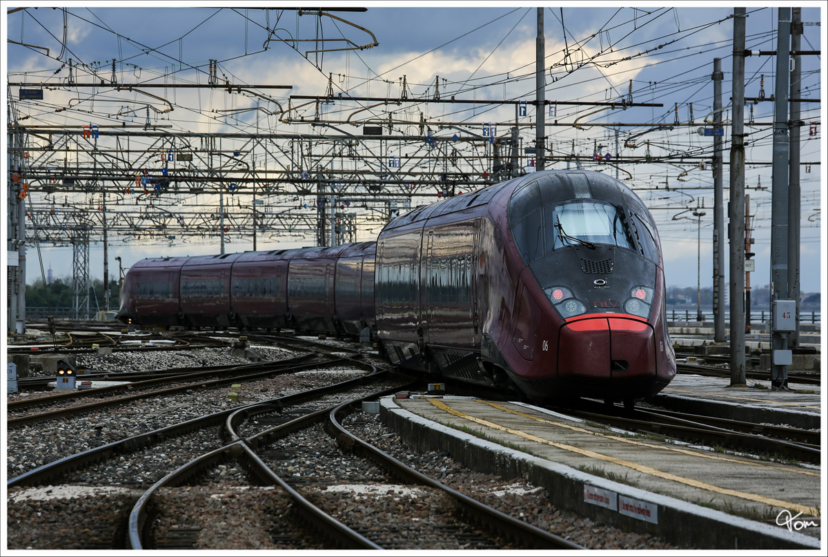 NTV 06 (Nuovo Trasporto Viaggiatori)  Italo   ETR 575 (Alstom AGV) im Bahnhof Venezia Santa Lucia.