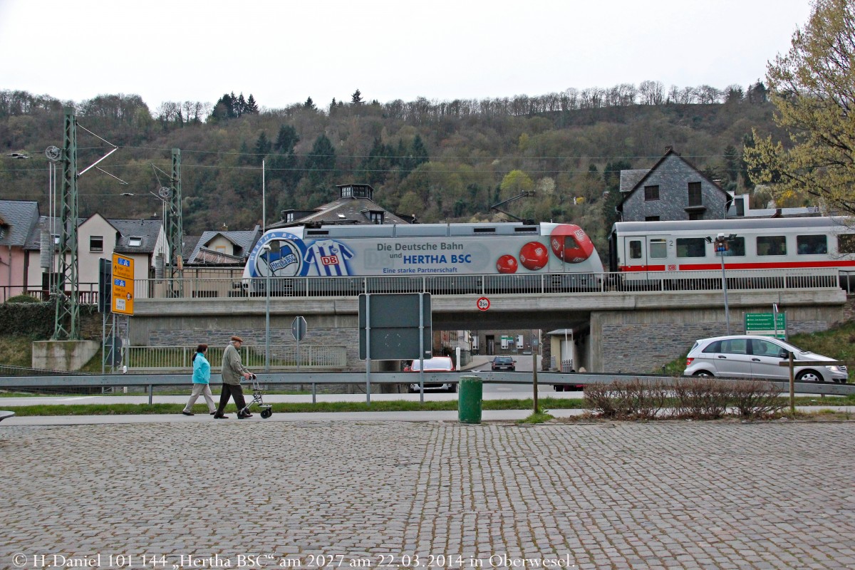 101 144 "Hertha BSC"mit einem IC am 22.03.2014 in Oberwesel.