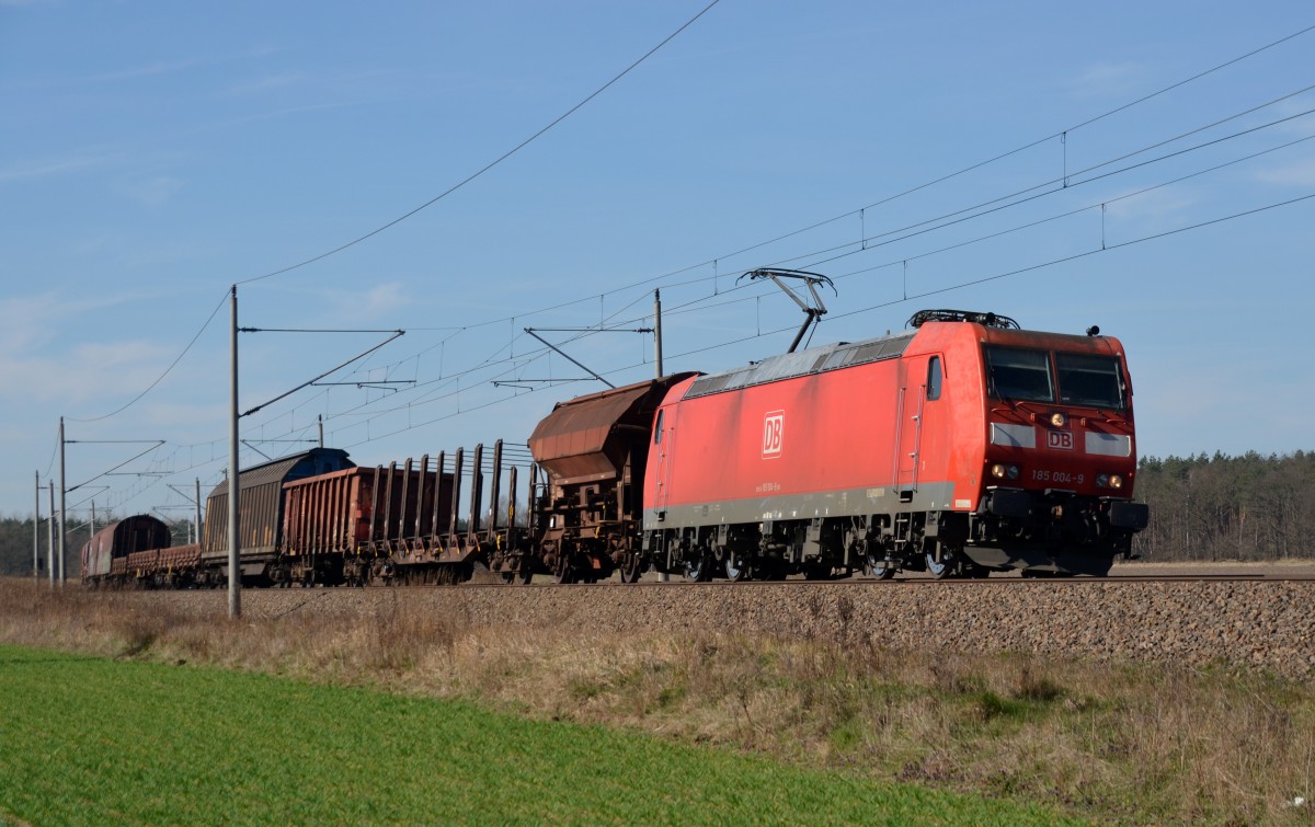 185 004 führte am 20.03.14 einen gemischten Güterzug durch Burgkemnitz Richtung Wittenberg.