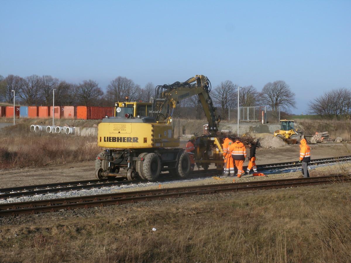 Aus Mukran gibt es Neues zuvermelden,das ehmalige Zufahrtsgleis und der Bereich am ehmaligen Personenbahnhof wird wieder reaktiviert.Am 26.März 2014 fotografierte ich den Zweiwegebagger auf dem neuen Zufahrtsgleis.