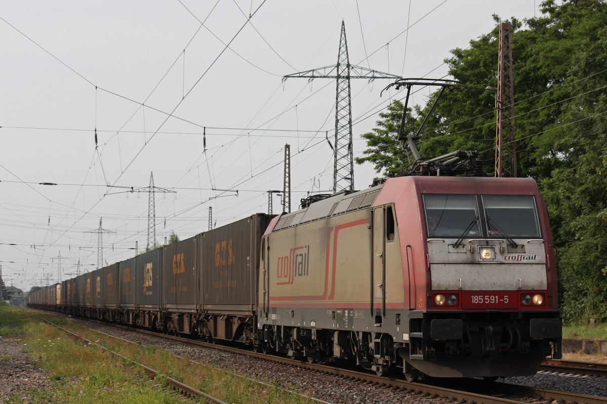 Crossrail 185 591 am 17.7.13 mit einem Containerzug in Ratingen-Lintorf.